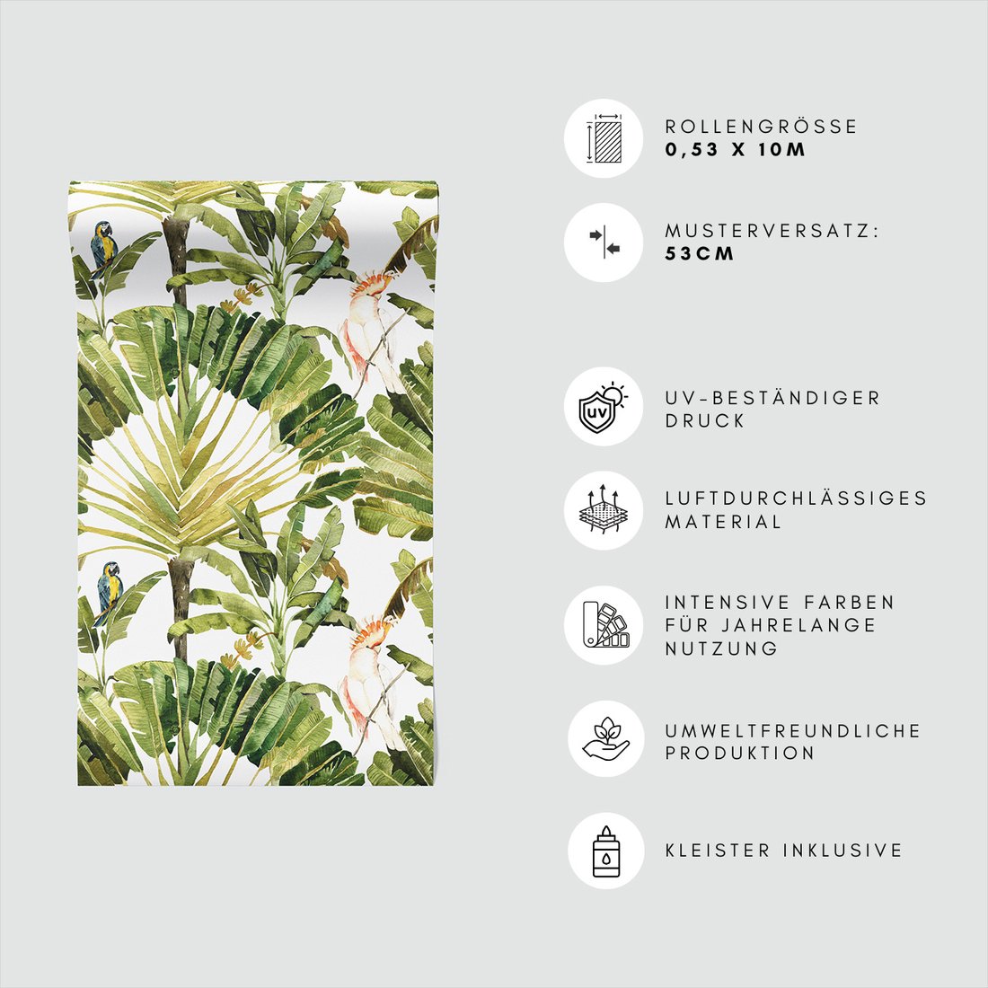 Odkryj piękno i funkcjonalność tapety z motywem liście, papuga, tropiki. To połączenie wyjątkowego wzornictwa z łatwością aplikacji, doskonałe do każdego pomieszczenia.