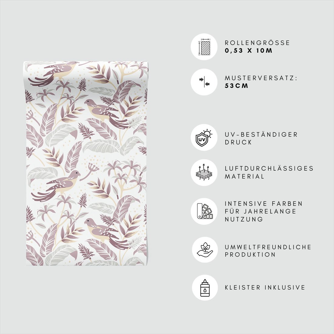 Odkryj piękno i funkcjonalność tapety z motywem liście, ptaki, kwiaty. To połączenie wyjątkowego wzornictwa z łatwością aplikacji, doskonałe do każdego pomieszczenia.