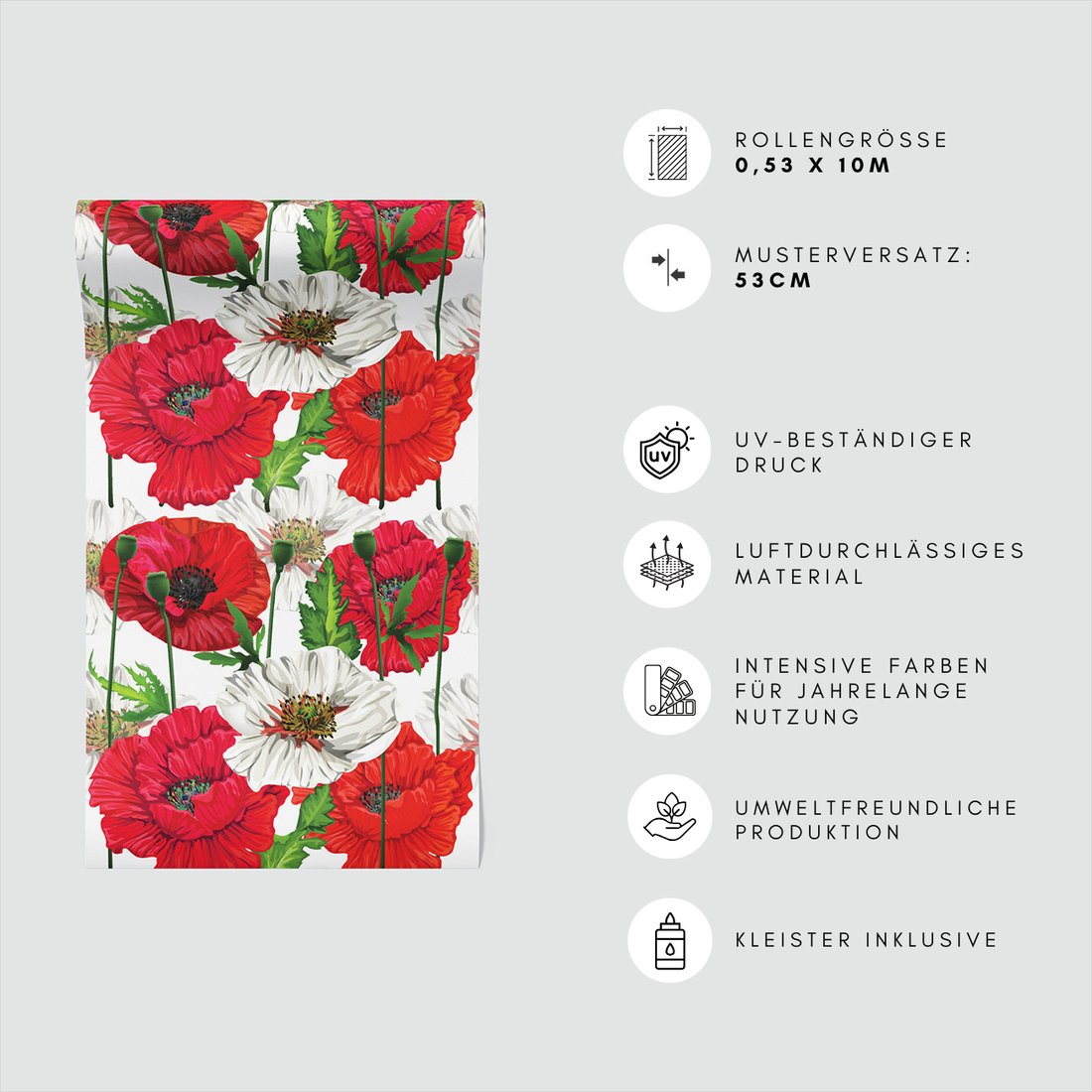 Odkryj piękno i funkcjonalność tapety z motywem maki, liście, pąki. To połączenie wyjątkowego wzornictwa z łatwością aplikacji, doskonałe do każdego pomieszczenia.