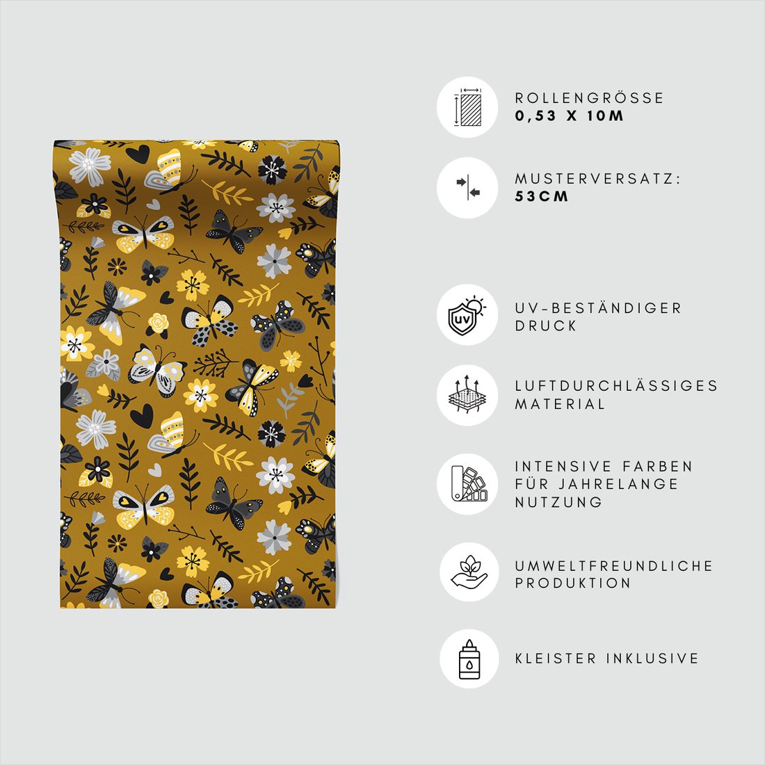 Odkryj piękno i funkcjonalność tapety z motywem motyle, kwiaty, liście. To połączenie wyjątkowego wzornictwa z łatwością aplikacji, doskonałe do każdego pomieszczenia.