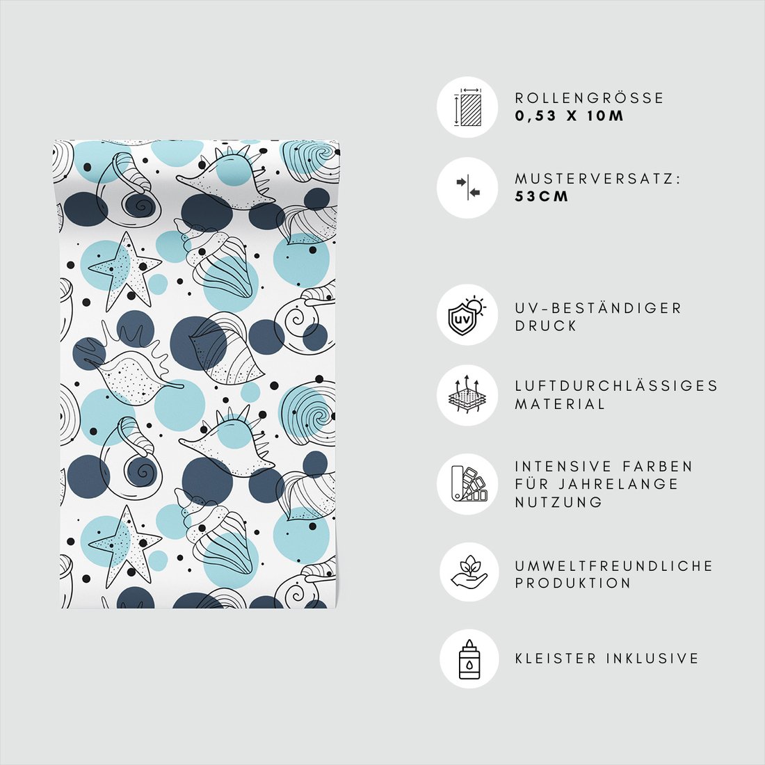 Odkryj piękno i funkcjonalność tapety z motywem muszle, gwiazda, kropki. To połączenie wyjątkowego wzornictwa z łatwością aplikacji, doskonałe do każdego pomieszczenia.