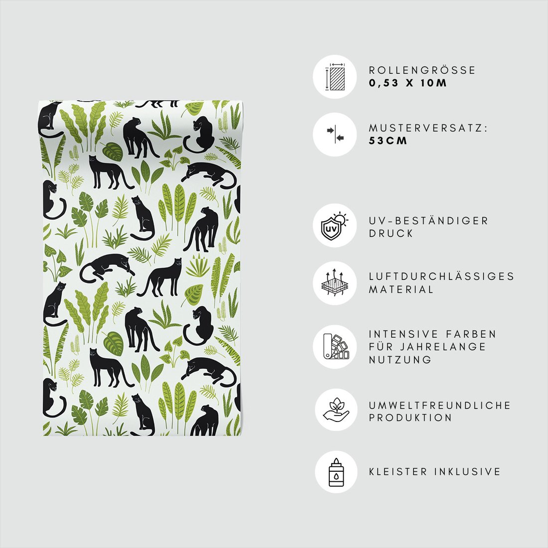 Odkryj piękno i funkcjonalność tapety z motywem pantery, liście, roślinność. To połączenie wyjątkowego wzornictwa z łatwością aplikacji, doskonałe do każdego pomieszczenia.
