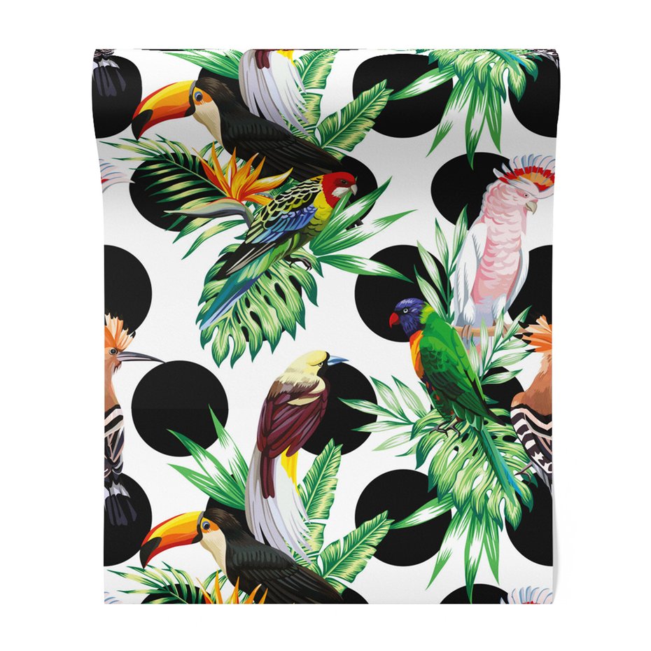Tapeta - papugi, liście, kropki