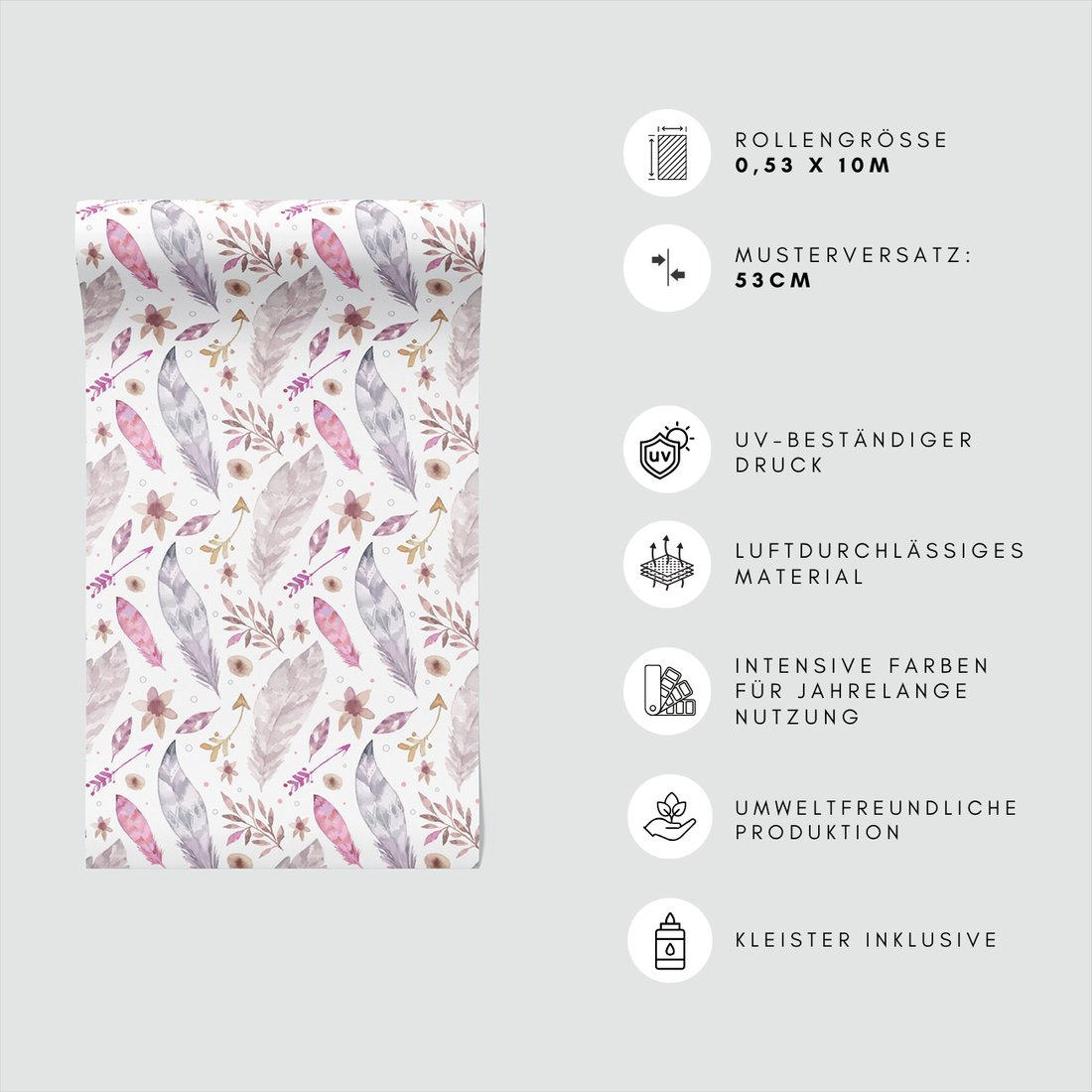 Odkryj piękno i funkcjonalność tapety z motywem pióra, kwiaty, strzały. To połączenie wyjątkowego wzornictwa z łatwością aplikacji, doskonałe do każdego pomieszczenia.
