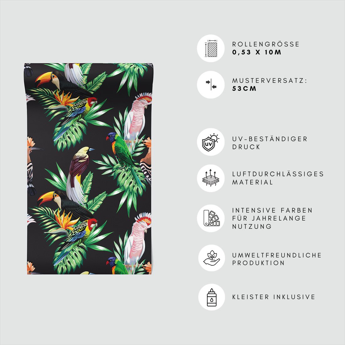Odkryj piękno i funkcjonalność tapety z motywem ptaki, liście, tropiki. To połączenie wyjątkowego wzornictwa z łatwością aplikacji, doskonałe do każdego pomieszczenia.
