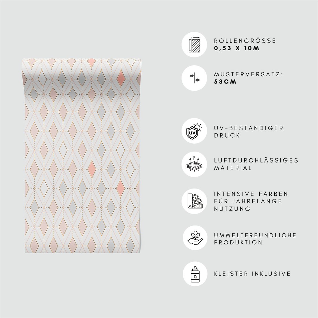 Odkryj piękno i funkcjonalność tapety z motywem romby, kropki, linie. To połączenie wyjątkowego wzornictwa z łatwością aplikacji, doskonałe do każdego pomieszczenia.
