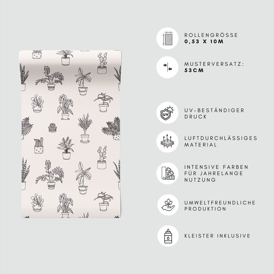 Odkryj piękno i funkcjonalność tapety z motywem rośliny, doniczki, liście. To połączenie wyjątkowego wzornictwa z łatwością aplikacji, doskonałe do każdego pomieszczenia.
