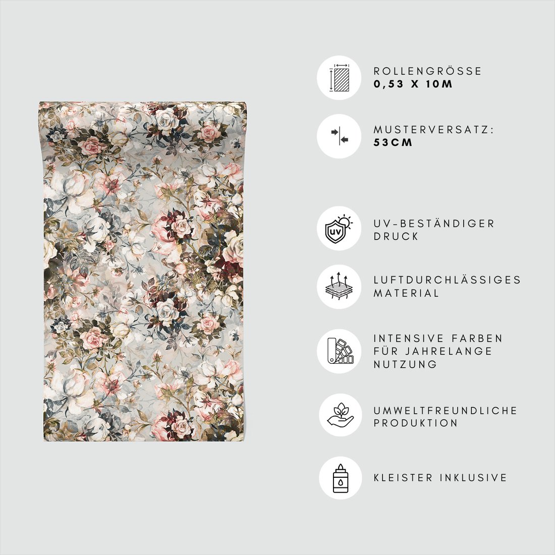 Odkryj piękno i funkcjonalność tapety z motywem róże, kwiaty, liście. To połączenie wyjątkowego wzornictwa z łatwością aplikacji, doskonałe do każdego pomieszczenia.