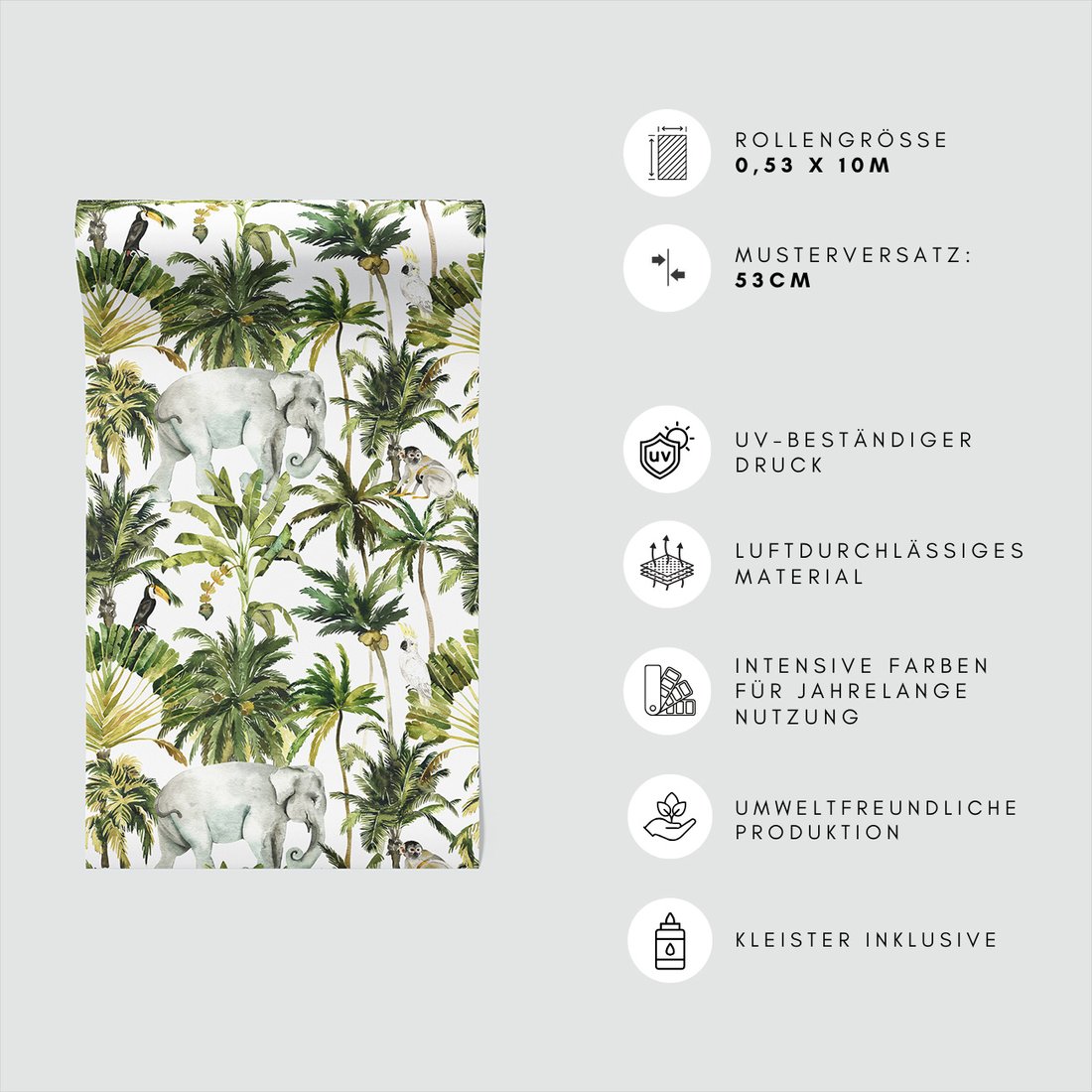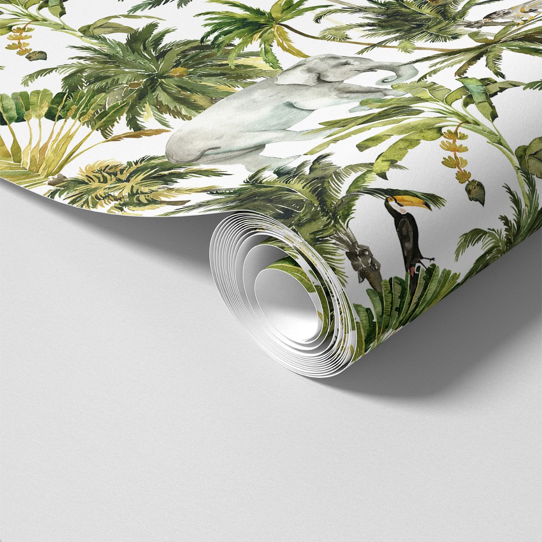Odkryj piękno i funkcjonalność tapety z motywem słoń, małpa, dżungla. To połączenie wyjątkowego wzornictwa z łatwością aplikacji, doskonałe do każdego pomieszczenia.