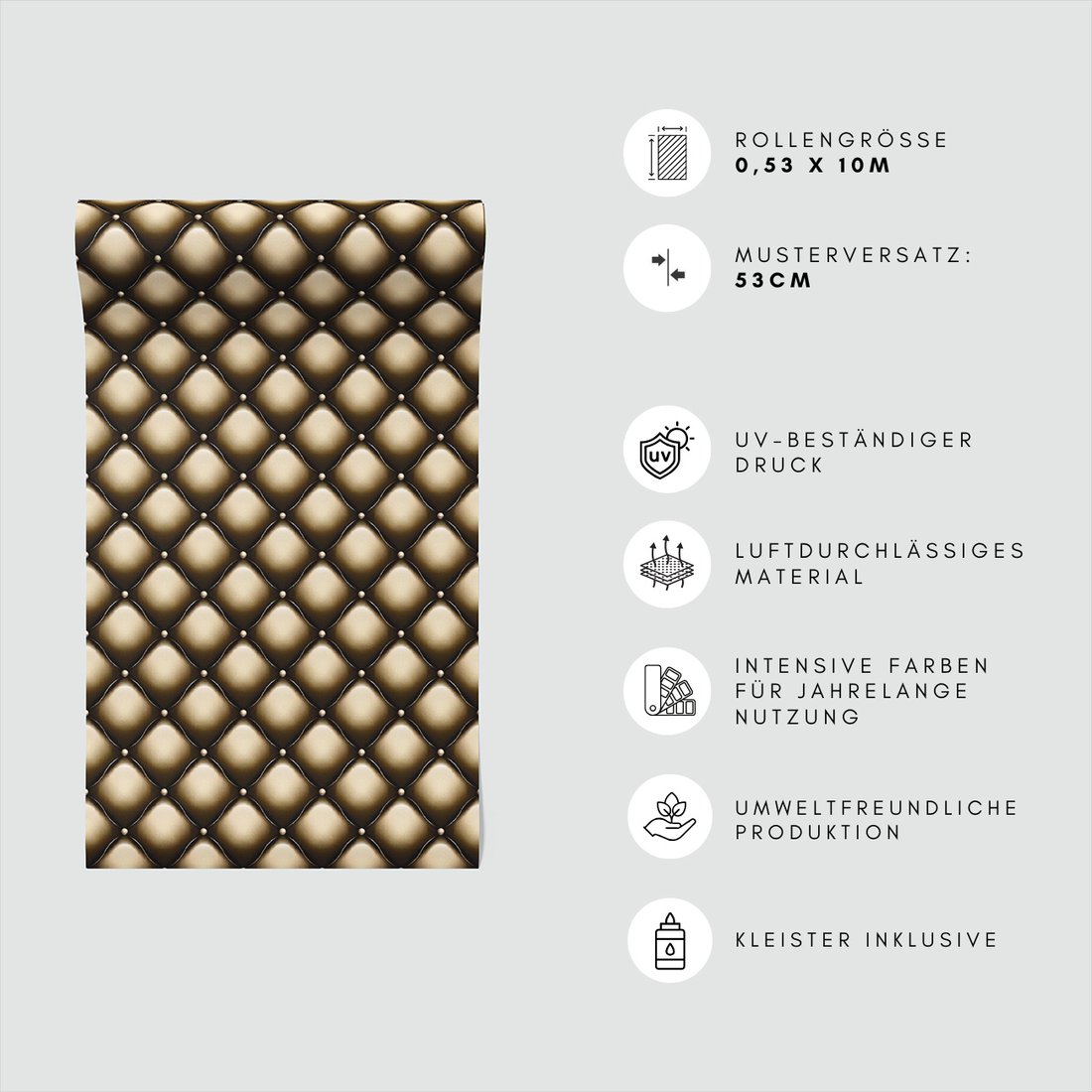 Odkryj piękno i funkcjonalność tapety z motywem tekstura, pikowanie, guziki. To połączenie wyjątkowego wzornictwa z łatwością aplikacji, doskonałe do każdego pomieszczenia.