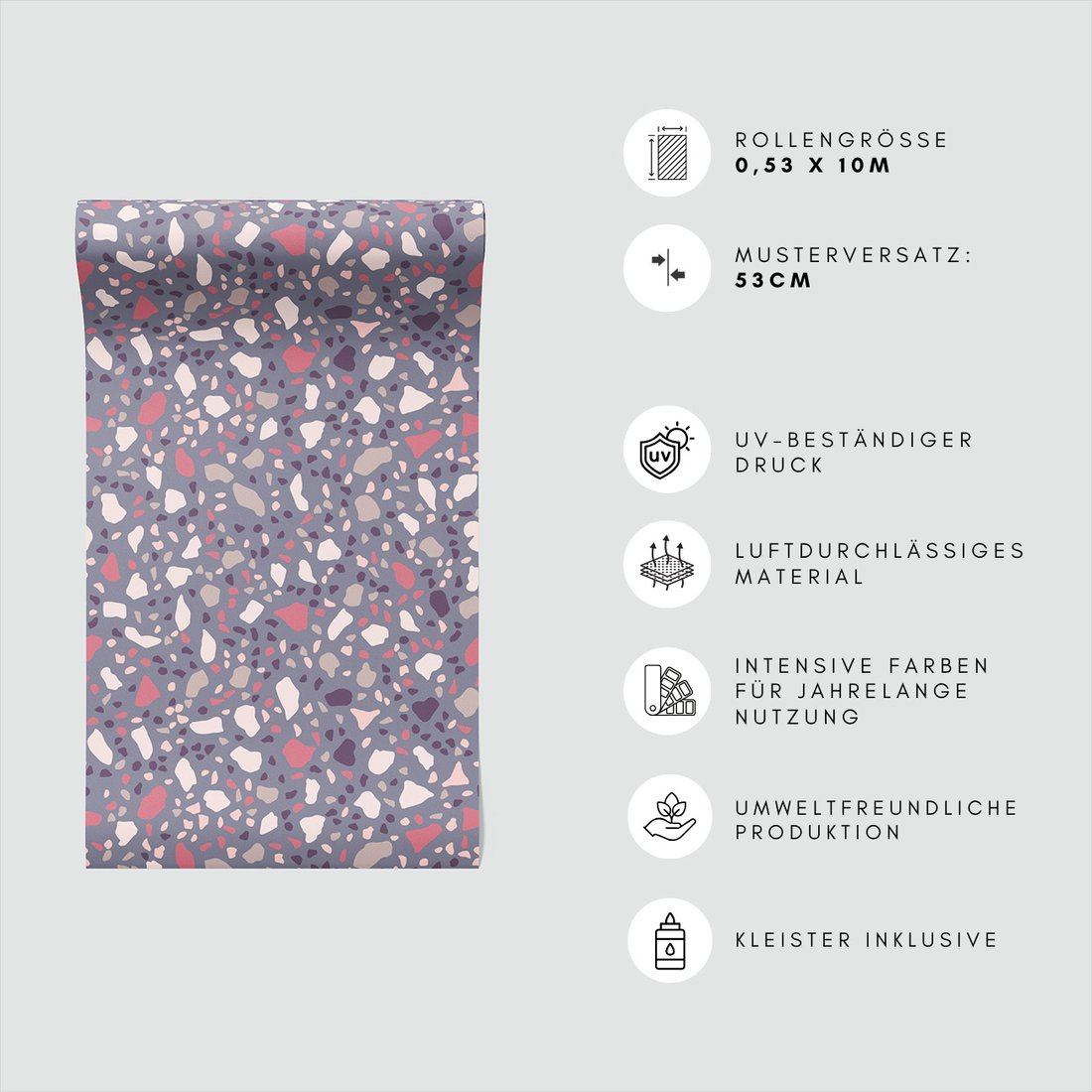Odkryj piękno i funkcjonalność tapety z motywem terazzo, kamień, tekstura. To połączenie wyjątkowego wzornictwa z łatwością aplikacji, doskonałe do każdego pomieszczenia.