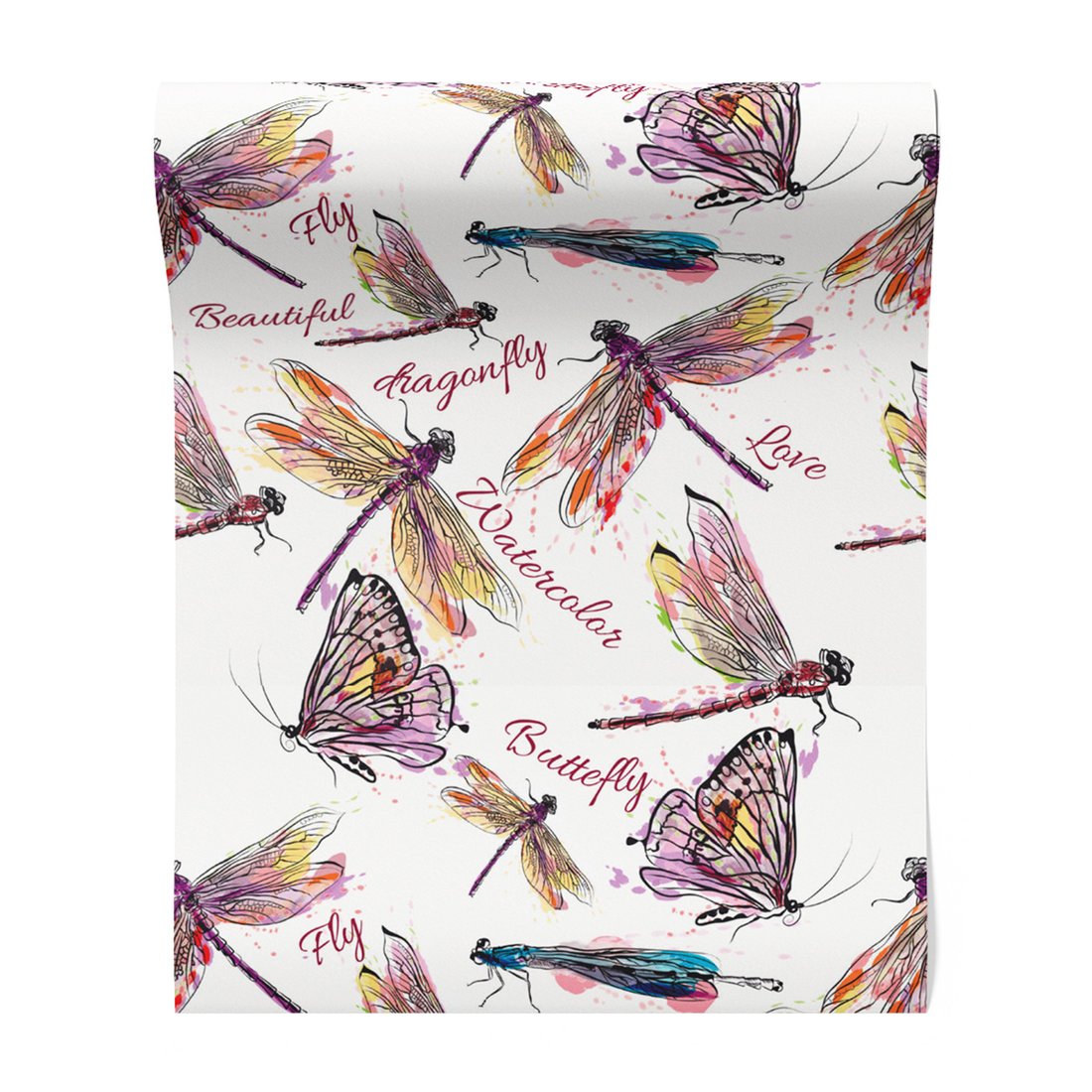Tapeta - ważki, motyle, akwarele
