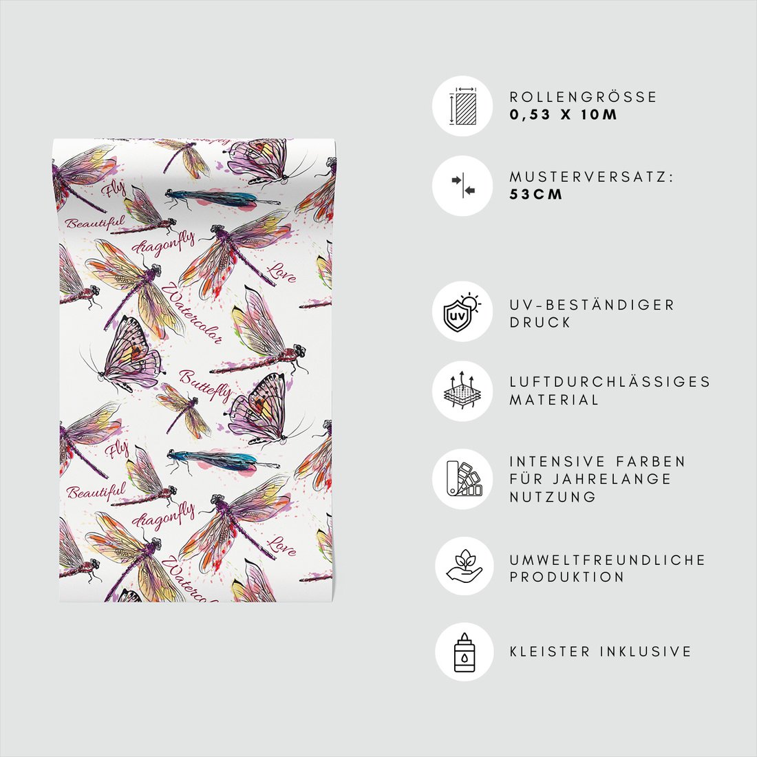 Odkryj piękno i funkcjonalność tapety z motywem ważki, motyle, akwarele. To połączenie wyjątkowego wzornictwa z łatwością aplikacji, doskonałe do każdego pomieszczenia.