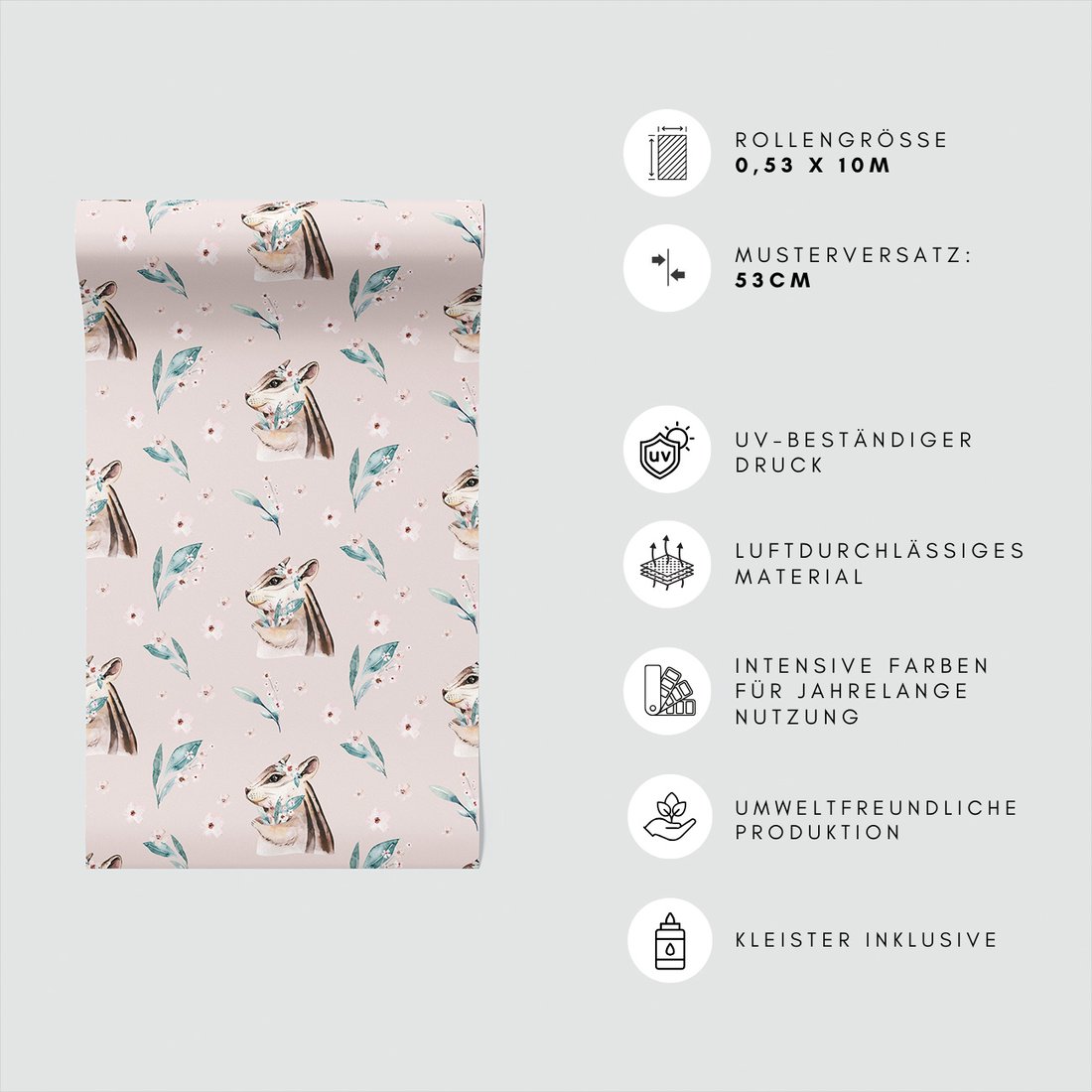 Odkryj piękno i funkcjonalność tapety z motywem wiewiórka, kwiaty, liście. To połączenie wyjątkowego wzornictwa z łatwością aplikacji, doskonałe do każdego pomieszczenia.