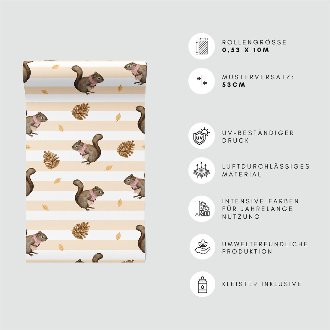 Odkryj piękno i funkcjonalność tapety z motywem wiewiórka, szyszka, liść. To połączenie wyjątkowego wzornictwa z łatwością aplikacji, doskonałe do każdego pomieszczenia.