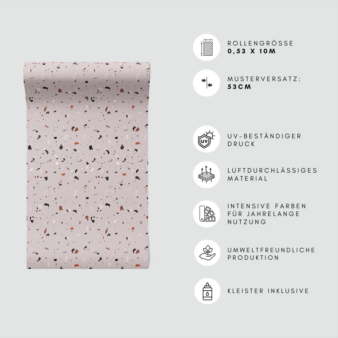 Odkryj piękno i funkcjonalność tapety z motywem ziarno, lastryko, tekstura. To połączenie wyjątkowego wzornictwa z łatwością aplikacji, doskonałe do każdego pomieszczenia.