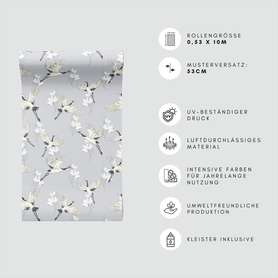 Odkryj piękno i funkcjonalność tapety z motywem żurawie, kwiaty, wzór. To połączenie wyjątkowego wzornictwa z łatwością aplikacji, doskonałe do każdego pomieszczenia.