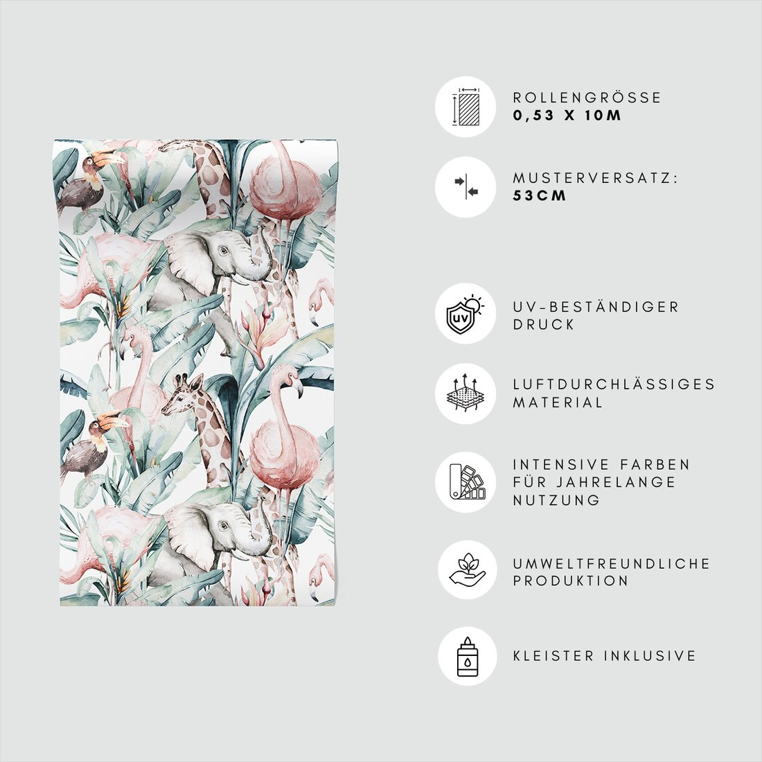 Odkryj piękno i funkcjonalność tapety z motywem żyrafa, słoń, flaming, . To połączenie wyjątkowego wzornictwa z łatwością aplikacji, doskonałe do każdego pomieszczenia.