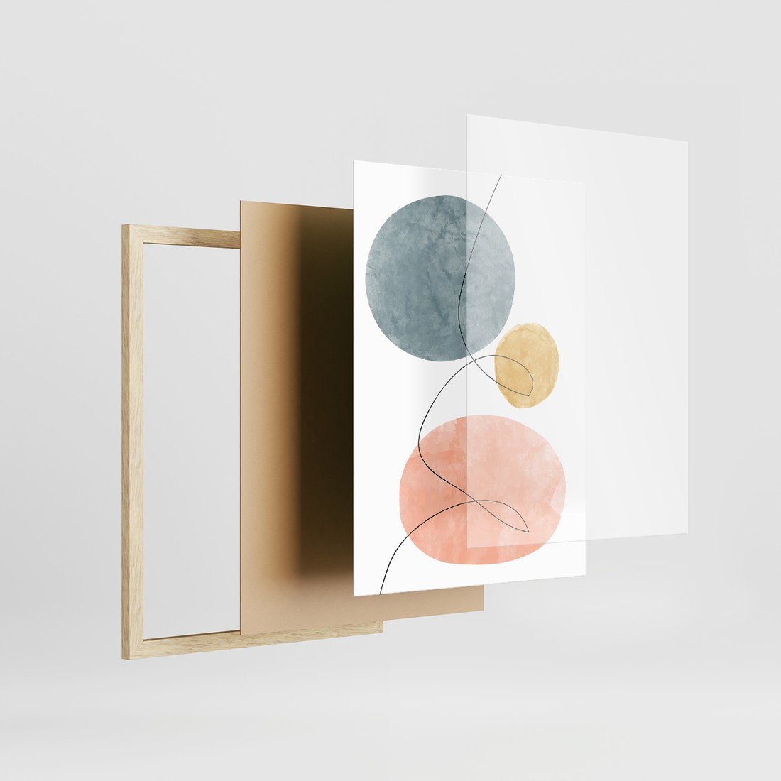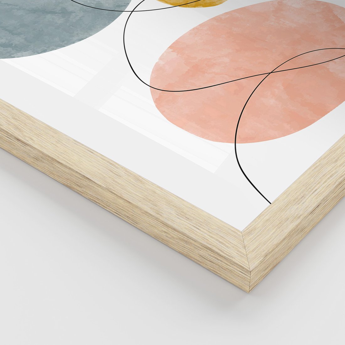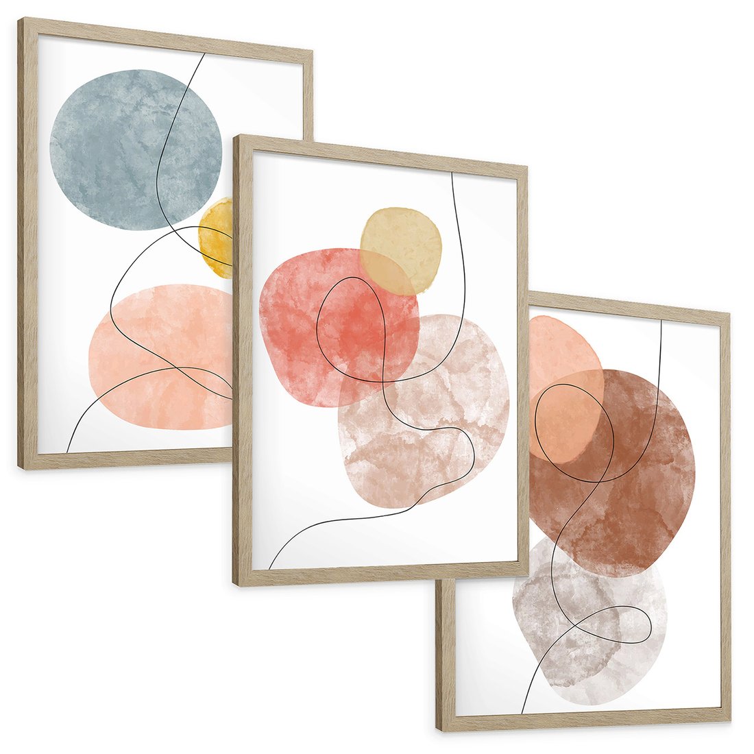 Zestaw obrazy w ramie, plakaty - abstrakcja,akwarele,linie - rama drewno