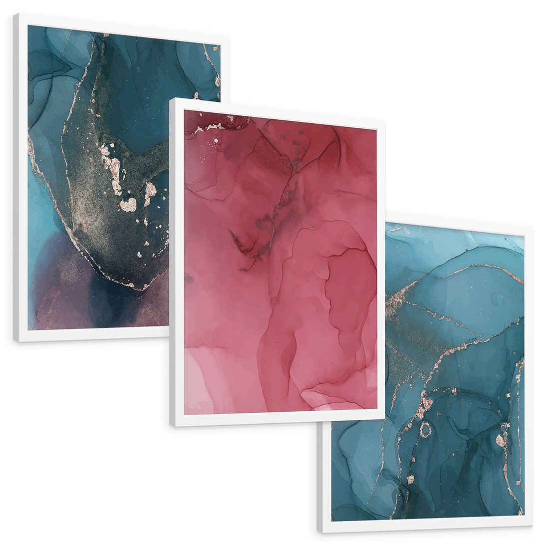 Zestaw obrazy w ramie, plakaty - abstrakcja,akwarele,marmur - rama biała