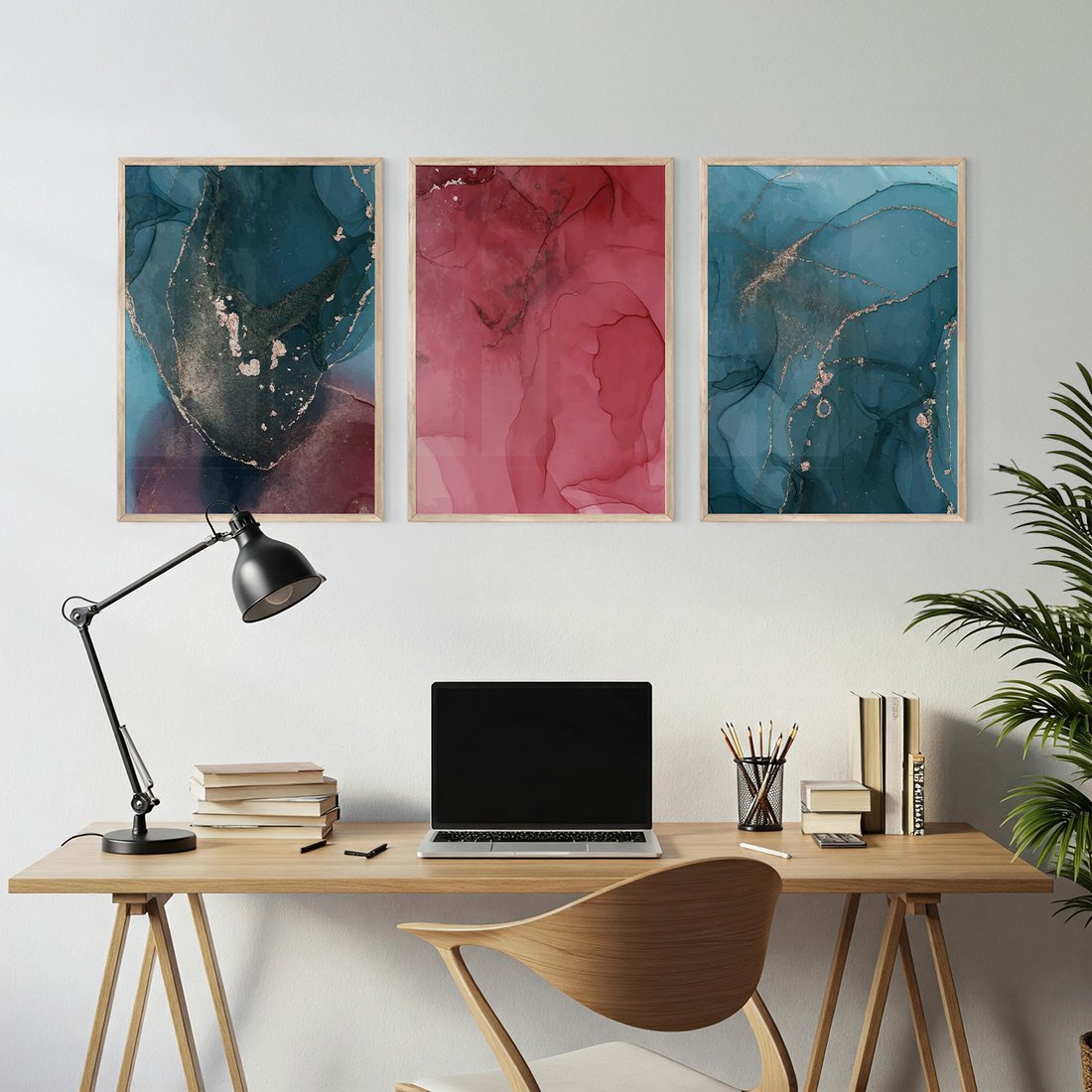 Przenieś piękno sztuki do swojego domu dzięki naszemu starannie skomponowanemu produktowi zestaw obrazów abstrakcja,akwarele,marmur. Każdy plakat, oprawiony w elegancką ramę, łączy w sobie estetykę i trwałość. Uniwersalne wzornictwo sprawia, że te dekoracje ścienne doskonale komponują się z różnymi stylami wnętrz, od nowoczesnych po klasyczne. Łatwość montażu pozwala na szybką i bezproblemową metamorfozę Twojej przestrzeni. To również idealny pomysł na wyszukany prezent, który z pewnością zachwyci.