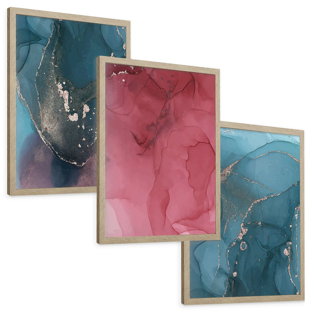 Zestaw obrazy w ramie, plakaty - abstrakcja,akwarele,marmur - rama drewno
