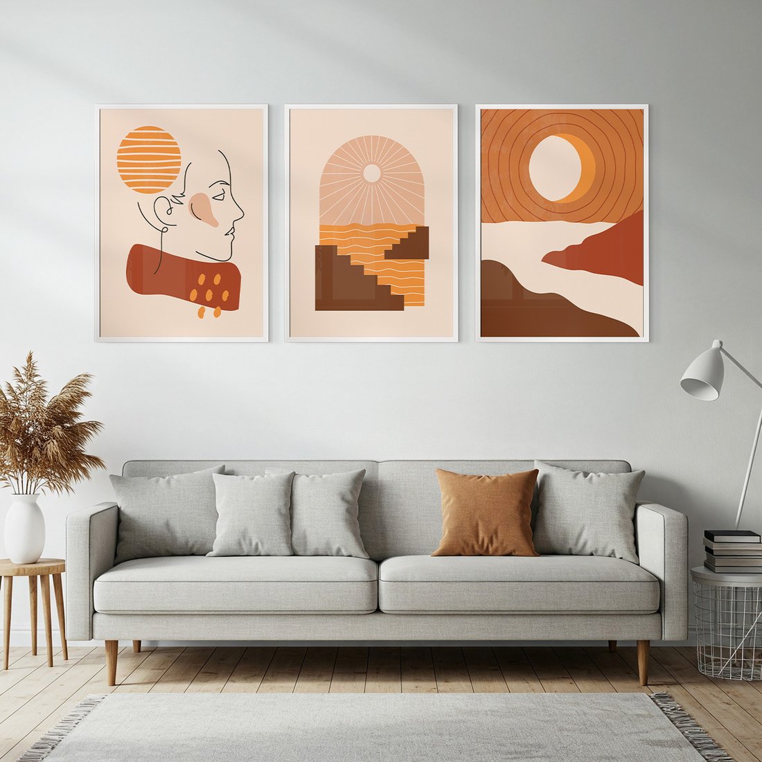 - Zestaw obrazy w ramie, plakaty - abstrakcja, boho, minimalizm