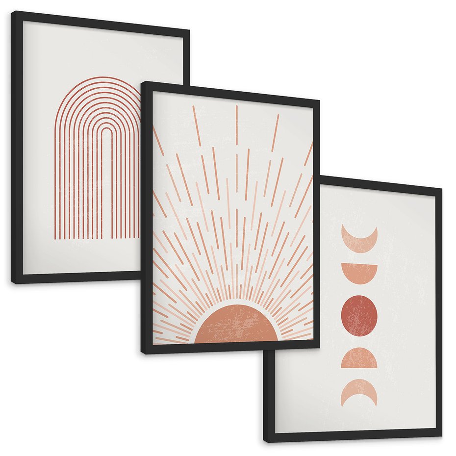 Zestaw obrazy w ramie, plakaty - abstrakcja, boho, minimalizm - rama czarna