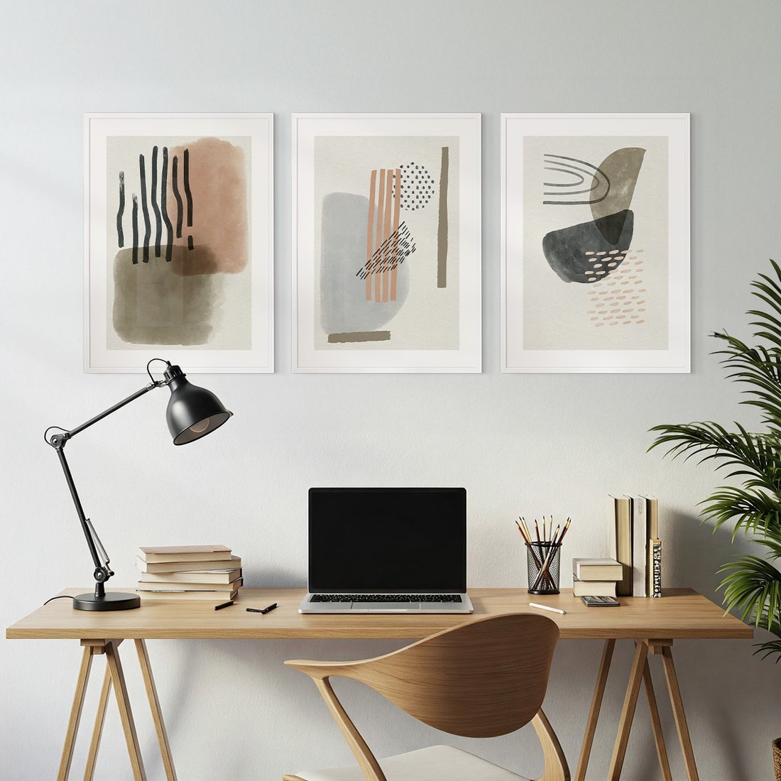 Przenieś piękno sztuki do swojego domu dzięki naszemu starannie skomponowanemu produktowi zestaw obrazów abstrakcja, geometria, kształty. Każdy plakat, oprawiony w elegancką ramę, łączy w sobie estetykę i trwałość. Uniwersalne wzornictwo sprawia, że te dekoracje ścienne doskonale komponują się z różnymi stylami wnętrz, od nowoczesnych po klasyczne. Łatwość montażu pozwala na szybką i bezproblemową metamorfozę Twojej przestrzeni. To również idealny pomysł na wyszukany prezent, który z pewnością zachwyci.