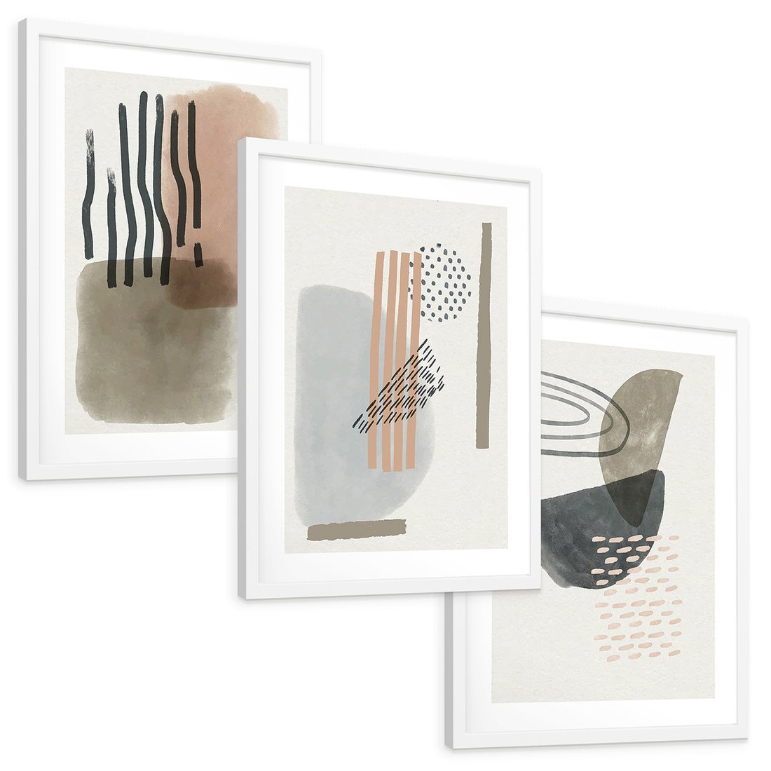 Zestaw obrazy w ramie, plakaty - abstrakcja, geometria, kształty - rama biała