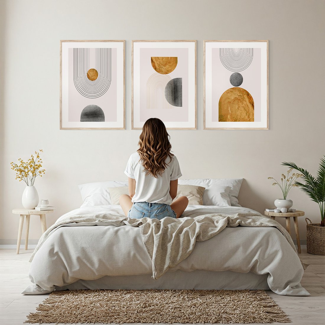 Przenieś piękno sztuki do swojego domu dzięki naszemu starannie skomponowanemu produktowi zestaw obrazów abstrakcja, geometria, minimalizm. Każdy plakat, oprawiony w elegancką ramę, łączy w sobie estetykę i trwałość. Uniwersalne wzornictwo sprawia, że te dekoracje ścienne doskonale komponują się z różnymi stylami wnętrz, od nowoczesnych po klasyczne. Łatwość montażu pozwala na szybką i bezproblemową metamorfozę Twojej przestrzeni. To również idealny pomysł na wyszukany prezent, który z pewnością zachwyci.