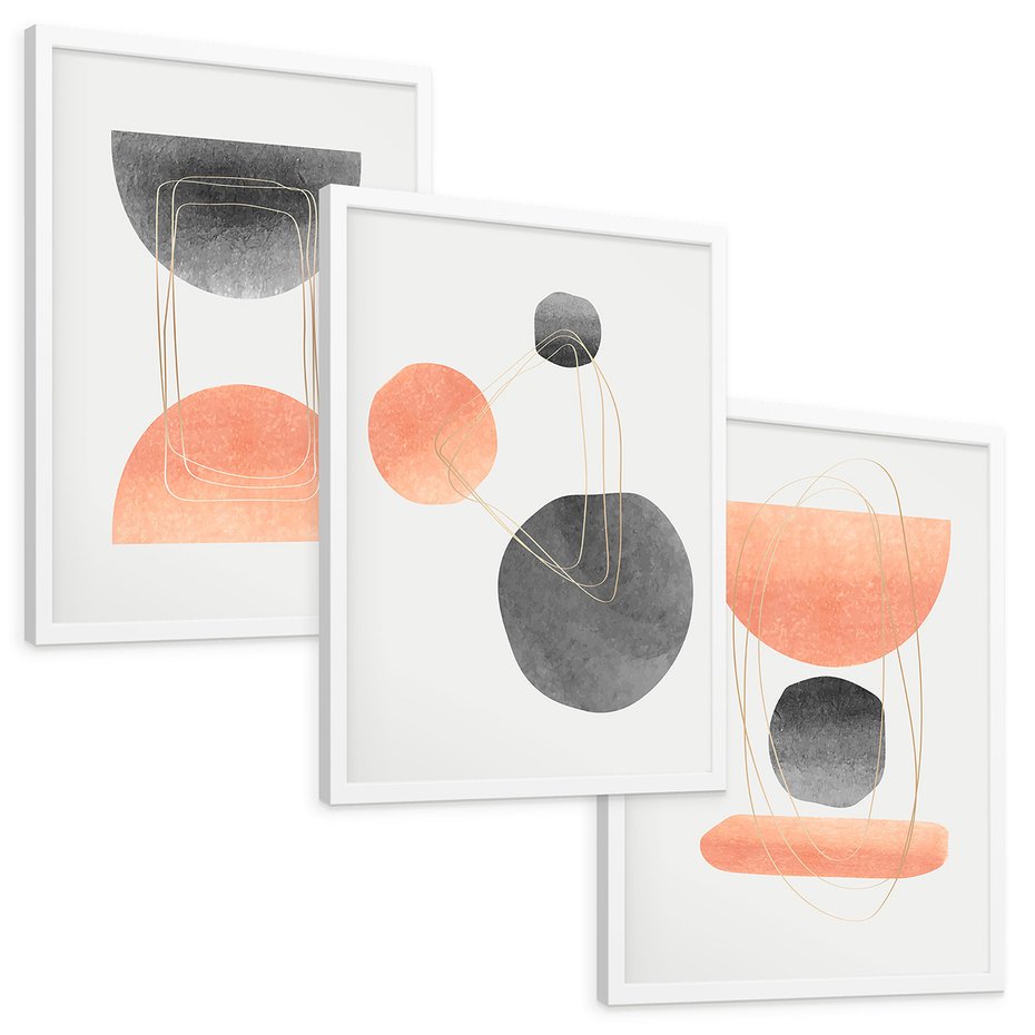 Zestaw obrazy w ramie, plakaty - abstrakcja, geometria, pastelowe - rama biała