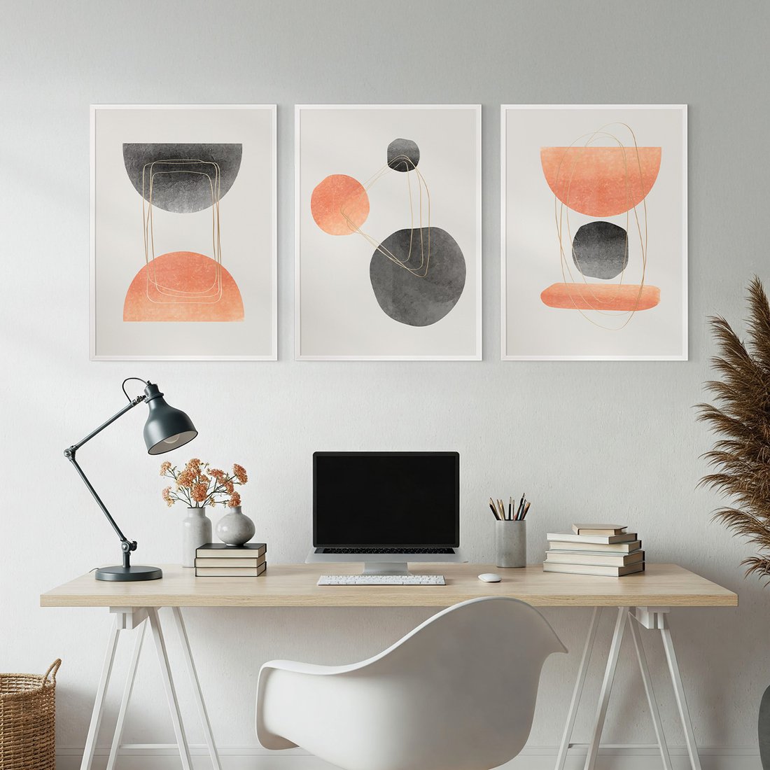 Przenieś piękno sztuki do swojego domu dzięki naszemu starannie skomponowanemu produktowi zestaw obrazów abstrakcja, geometria, pastelowe. Każdy plakat, oprawiony w elegancką ramę, łączy w sobie estetykę i trwałość. Uniwersalne wzornictwo sprawia, że te dekoracje ścienne doskonale komponują się z różnymi stylami wnętrz, od nowoczesnych po klasyczne. Łatwość montażu pozwala na szybką i bezproblemową metamorfozę Twojej przestrzeni. To również idealny pomysł na wyszukany prezent, który z pewnością zachwyci.