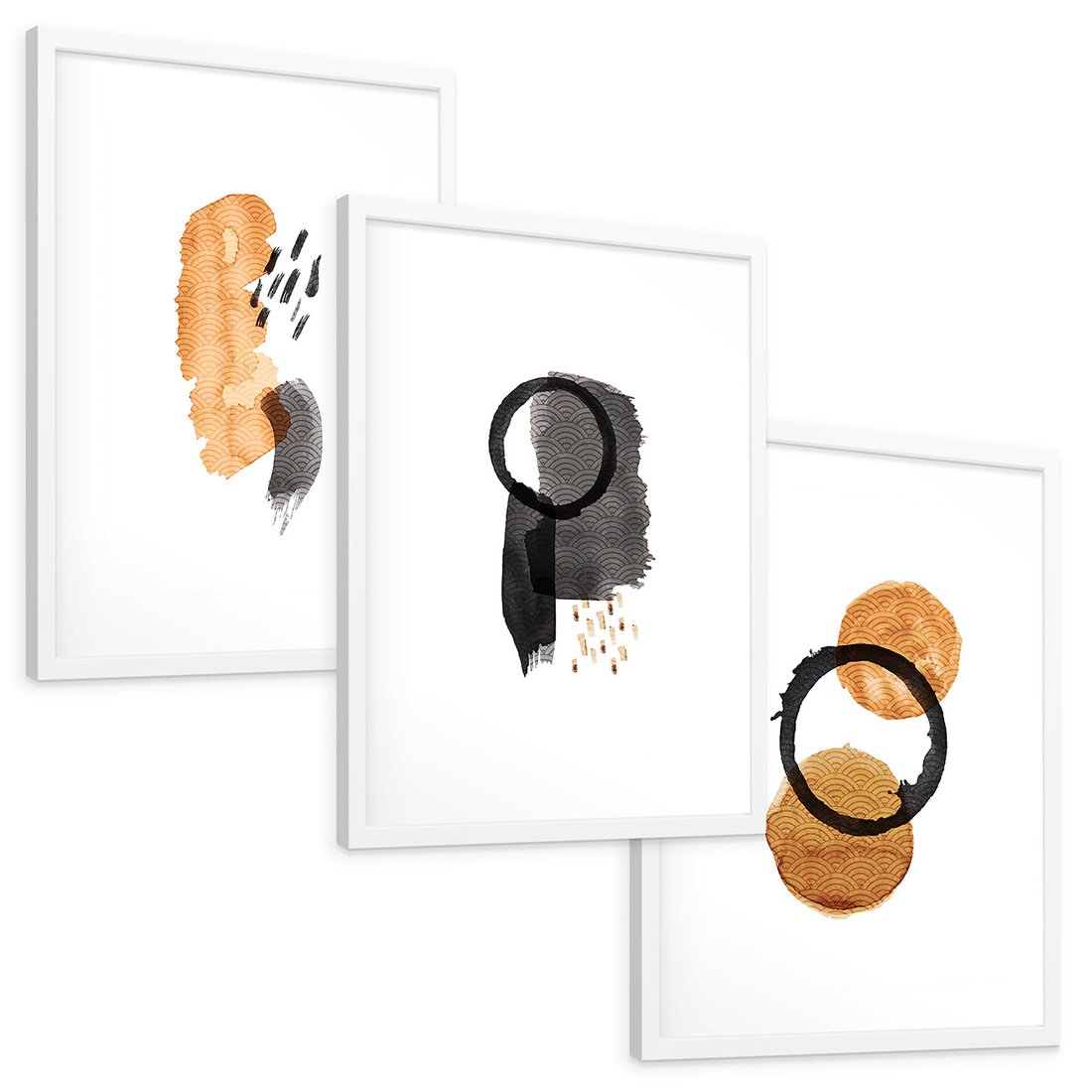 Zestaw obrazy w ramie, plakaty - abstrakcja, geometryczne, kształty - rama biała