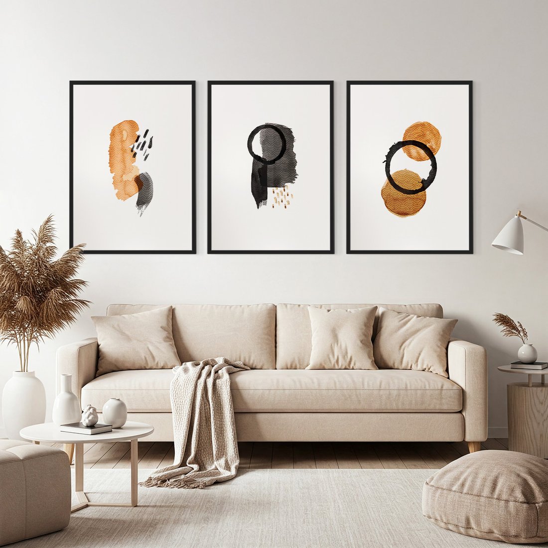 Przenieś piękno sztuki do swojego domu dzięki naszemu starannie skomponowanemu produktowi zestaw obrazów abstrakcja, geometryczne, kształty. Każdy plakat, oprawiony w elegancką ramę, łączy w sobie estetykę i trwałość. Uniwersalne wzornictwo sprawia, że te dekoracje ścienne doskonale komponują się z różnymi stylami wnętrz, od nowoczesnych po klasyczne. Łatwość montażu pozwala na szybką i bezproblemową metamorfozę Twojej przestrzeni. To również idealny pomysł na wyszukany prezent, który z pewnością zachwyci.