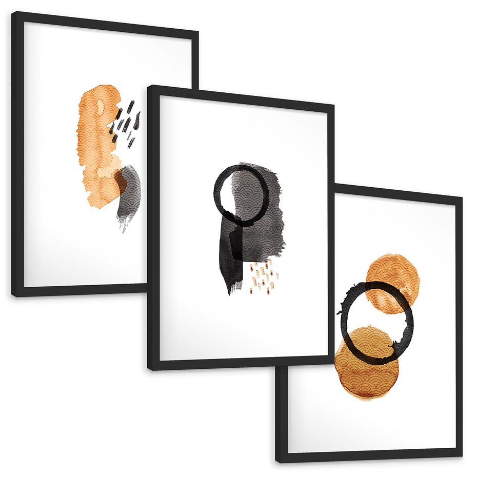 Zestaw obrazy w ramie, plakaty - abstrakcja, geometryczne, kształty - rama czarna
