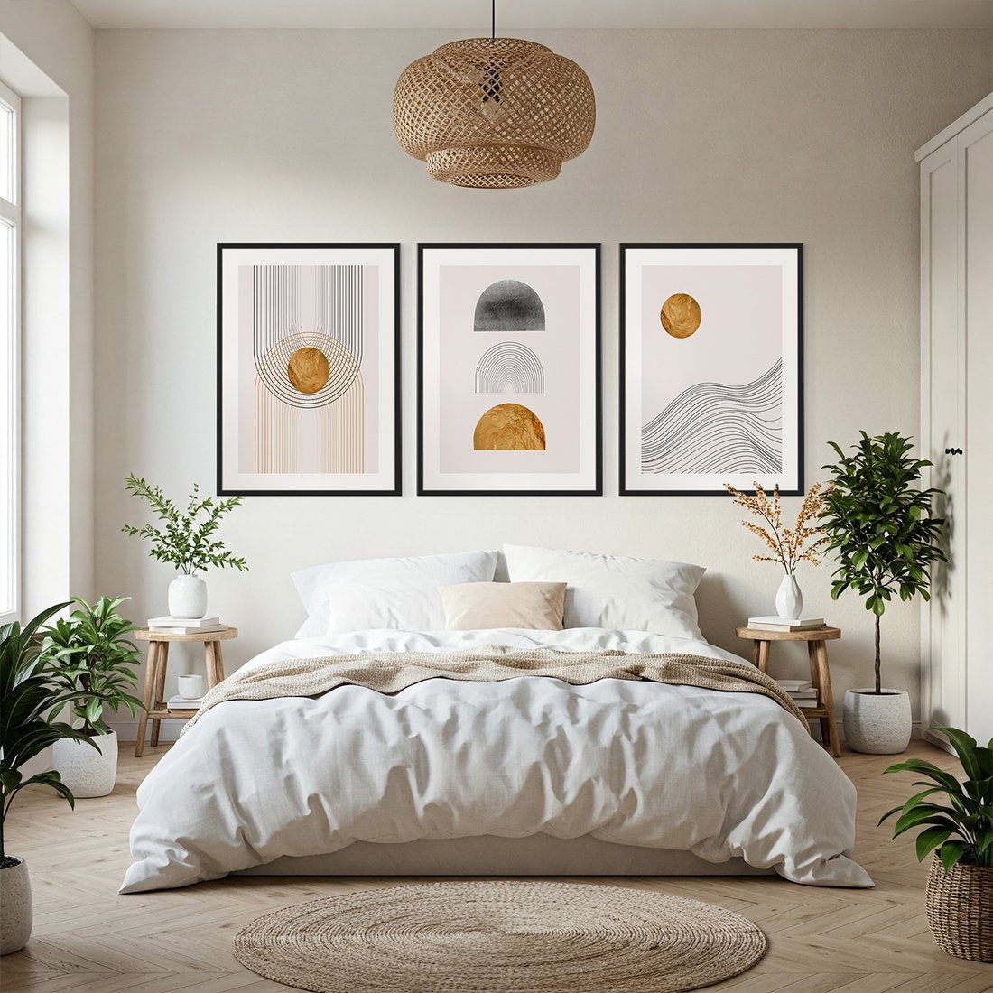 Przenieś piękno sztuki do swojego domu dzięki naszemu starannie skomponowanemu produktowi zestaw obrazów abstrakcja, geometryczne, linie. Każdy plakat, oprawiony w elegancką ramę, łączy w sobie estetykę i trwałość. Uniwersalne wzornictwo sprawia, że te dekoracje ścienne doskonale komponują się z różnymi stylami wnętrz, od nowoczesnych po klasyczne. Łatwość montażu pozwala na szybką i bezproblemową metamorfozę Twojej przestrzeni. To również idealny pomysł na wyszukany prezent, który z pewnością zachwyci.