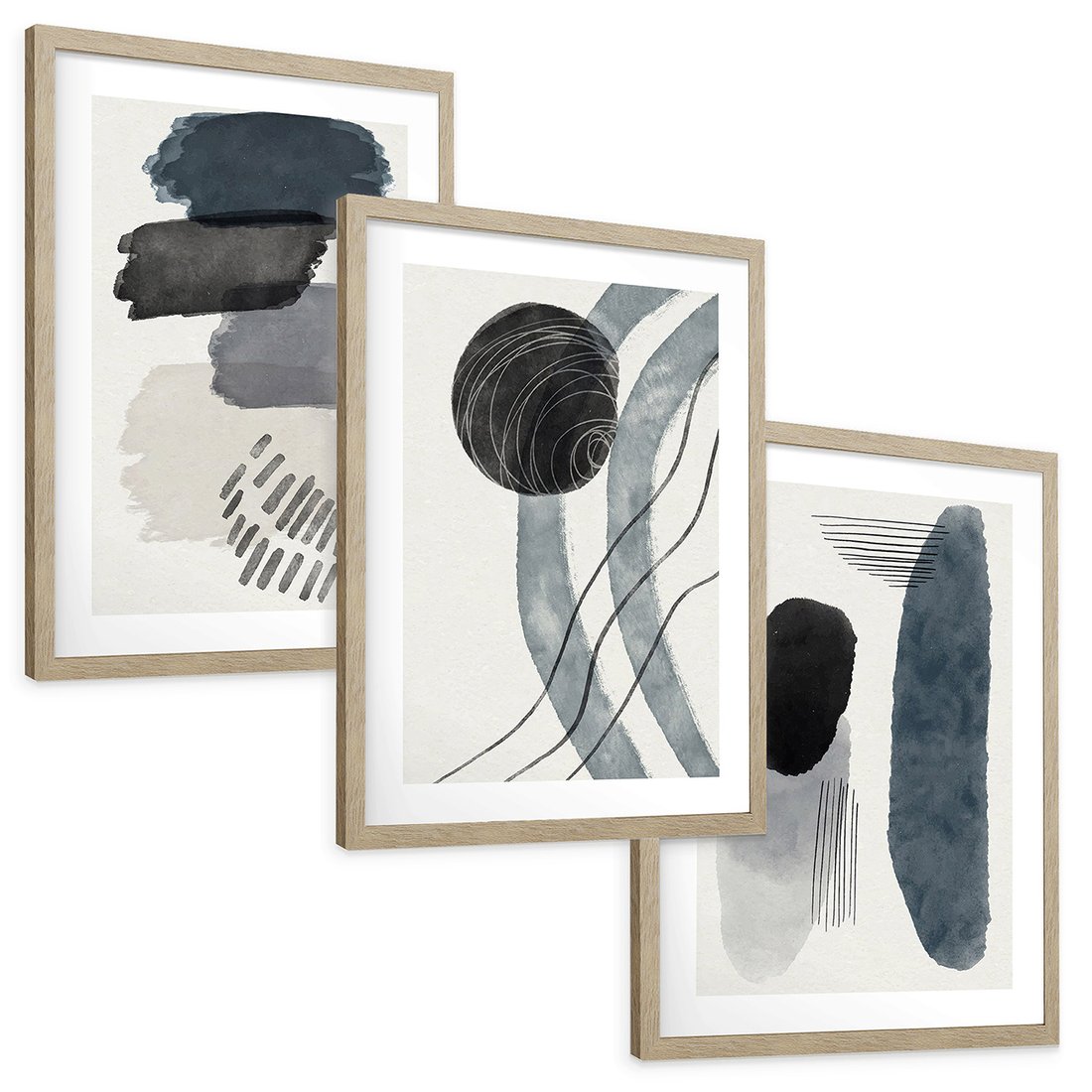 Zestaw obrazy w ramie, plakaty - abstrakcja, kształty, geometria - rama drewno