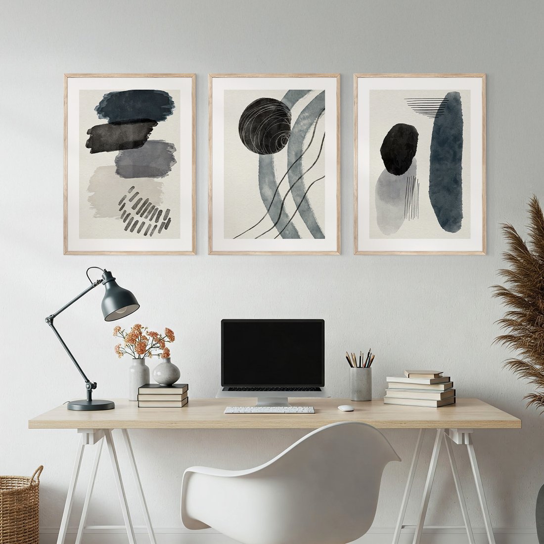 Przenieś piękno sztuki do swojego domu dzięki naszemu starannie skomponowanemu produktowi zestaw obrazów abstrakcja, kształty, geometria. Każdy plakat, oprawiony w elegancką ramę, łączy w sobie estetykę i trwałość. Uniwersalne wzornictwo sprawia, że te dekoracje ścienne doskonale komponują się z różnymi stylami wnętrz, od nowoczesnych po klasyczne. Łatwość montażu pozwala na szybką i bezproblemową metamorfozę Twojej przestrzeni. To również idealny pomysł na wyszukany prezent, który z pewnością zachwyci.