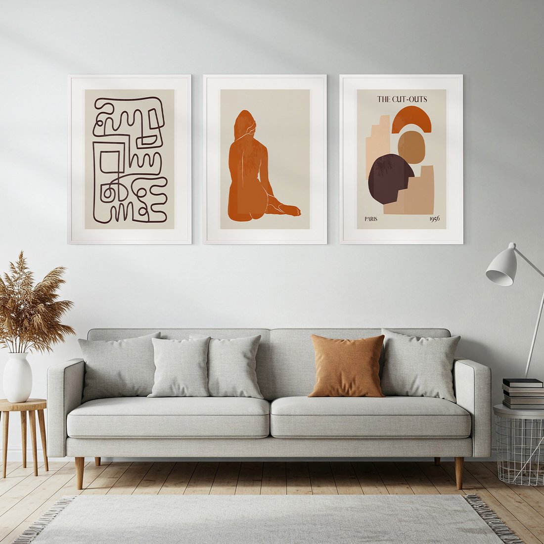 Zestaw obrazy w ramie, plakaty - abstrakcja,linie,figury - rama biała