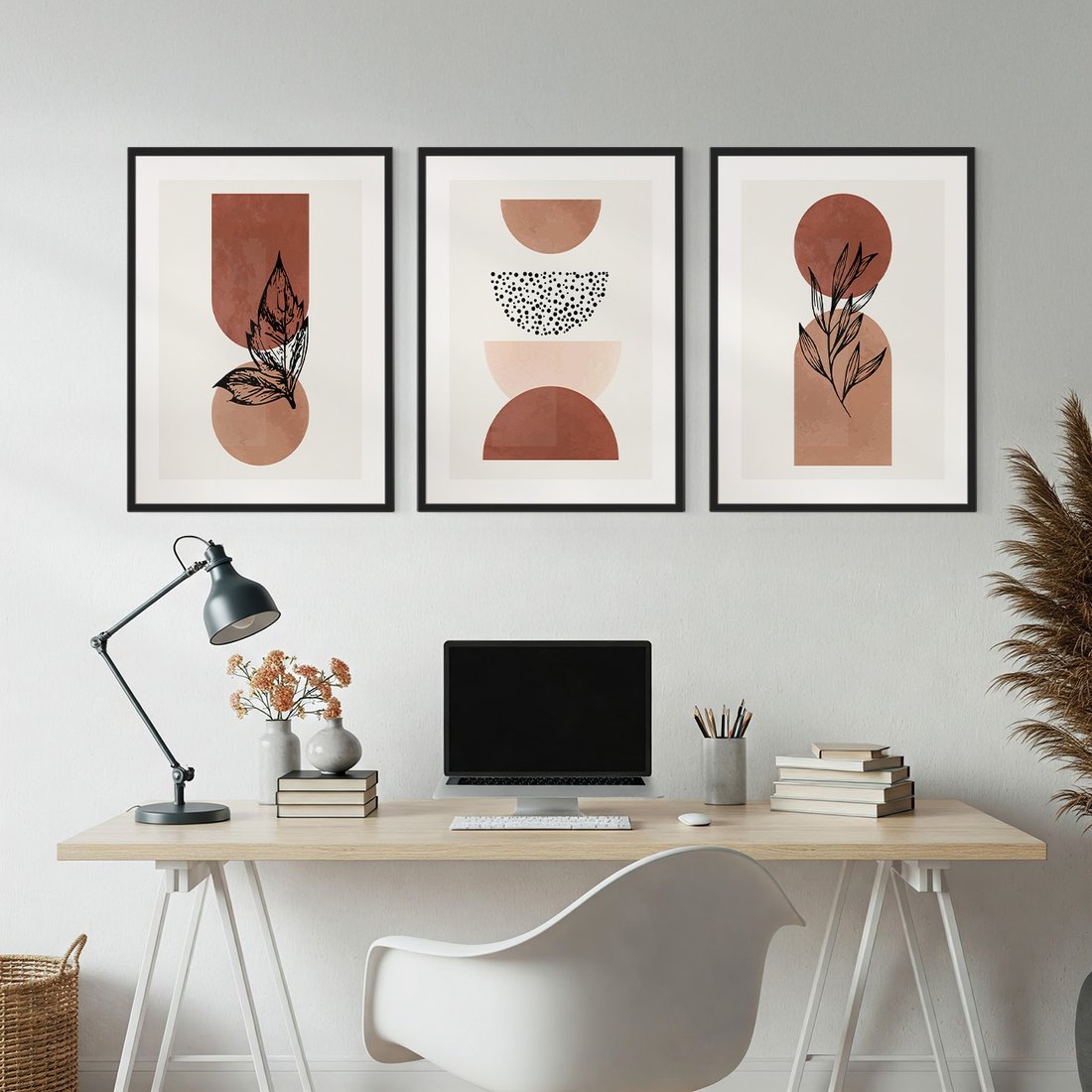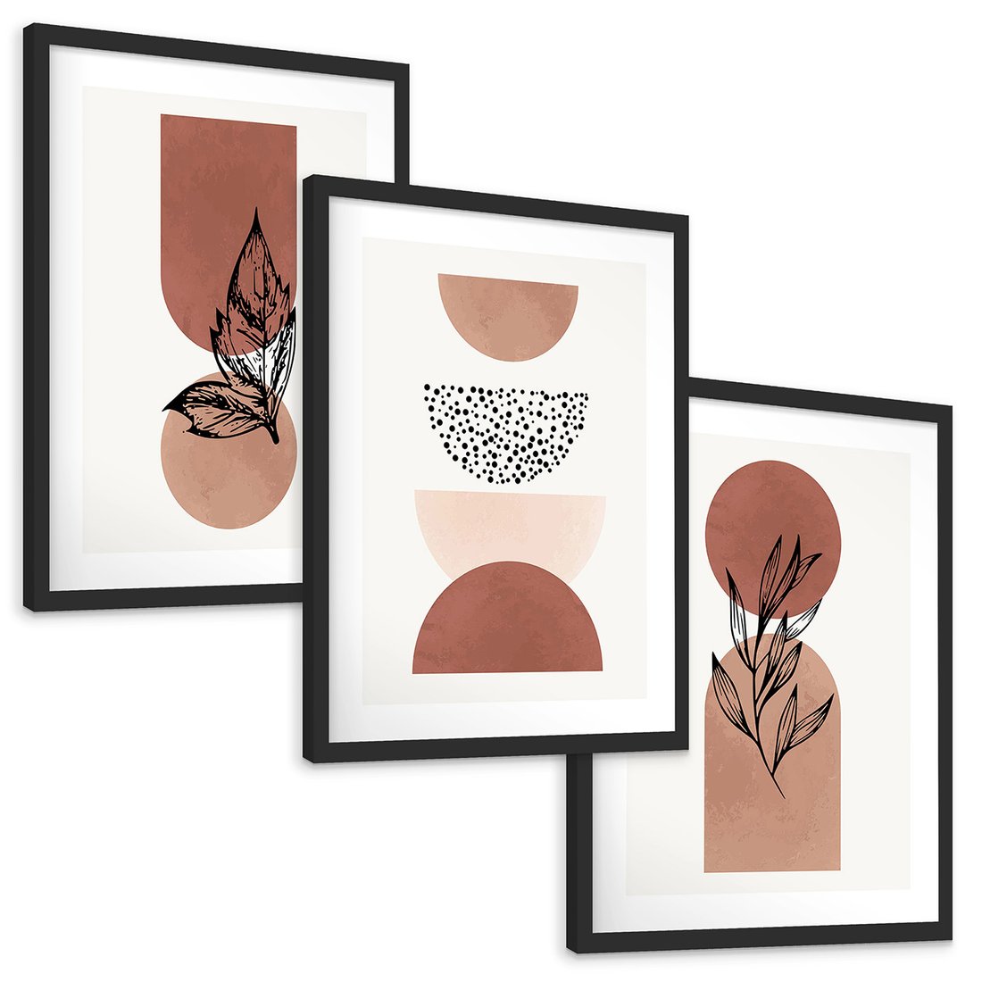 - Zestaw obrazy w ramie, plakaty - abstrakcja, liście, kształty