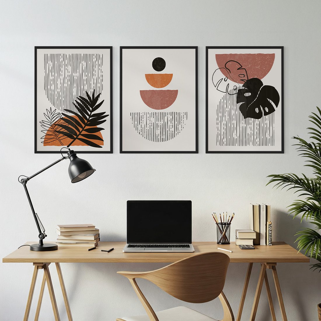 Przenieś piękno sztuki do swojego domu dzięki naszemu starannie skomponowanemu produktowi zestaw obrazów abstrakcja, liście, minimalizm. Każdy plakat, oprawiony w elegancką ramę, łączy w sobie estetykę i trwałość. Uniwersalne wzornictwo sprawia, że te dekoracje ścienne doskonale komponują się z różnymi stylami wnętrz, od nowoczesnych po klasyczne. Łatwość montażu pozwala na szybką i bezproblemową metamorfozę Twojej przestrzeni. To również idealny pomysł na wyszukany prezent, który z pewnością zachwyci.