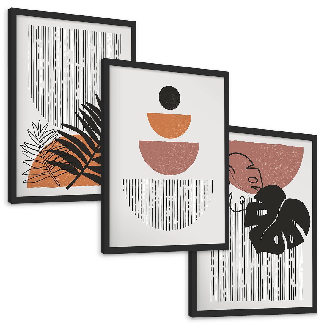 Zestaw obrazy w ramie, plakaty - abstrakcja, liście, minimalizm - rama czarna