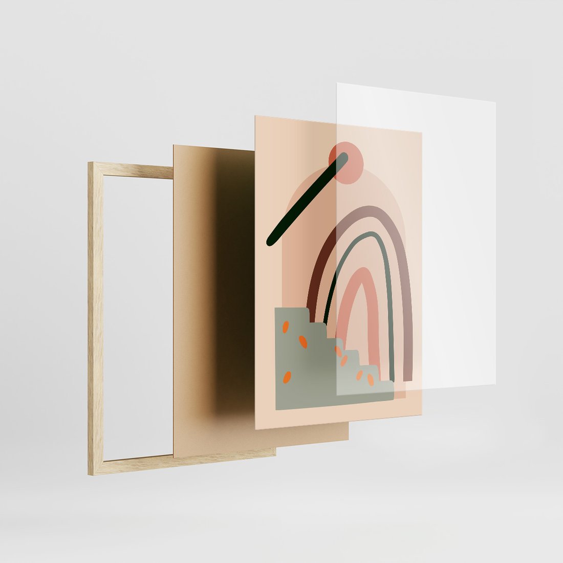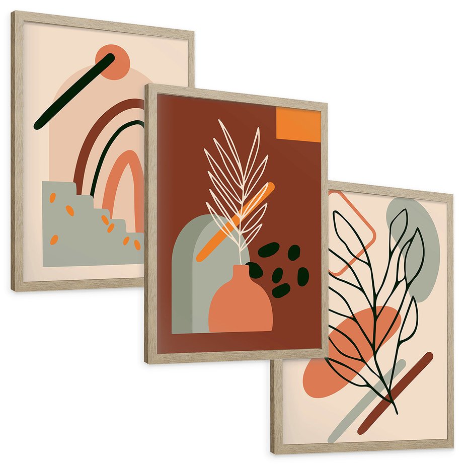 Zestaw obrazy w ramie, plakaty - abstrakcja, liście, rośliny - rama drewno