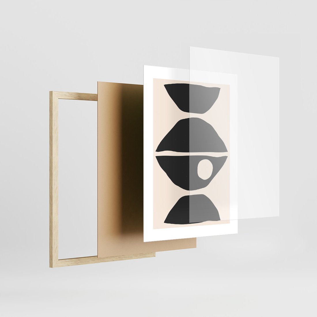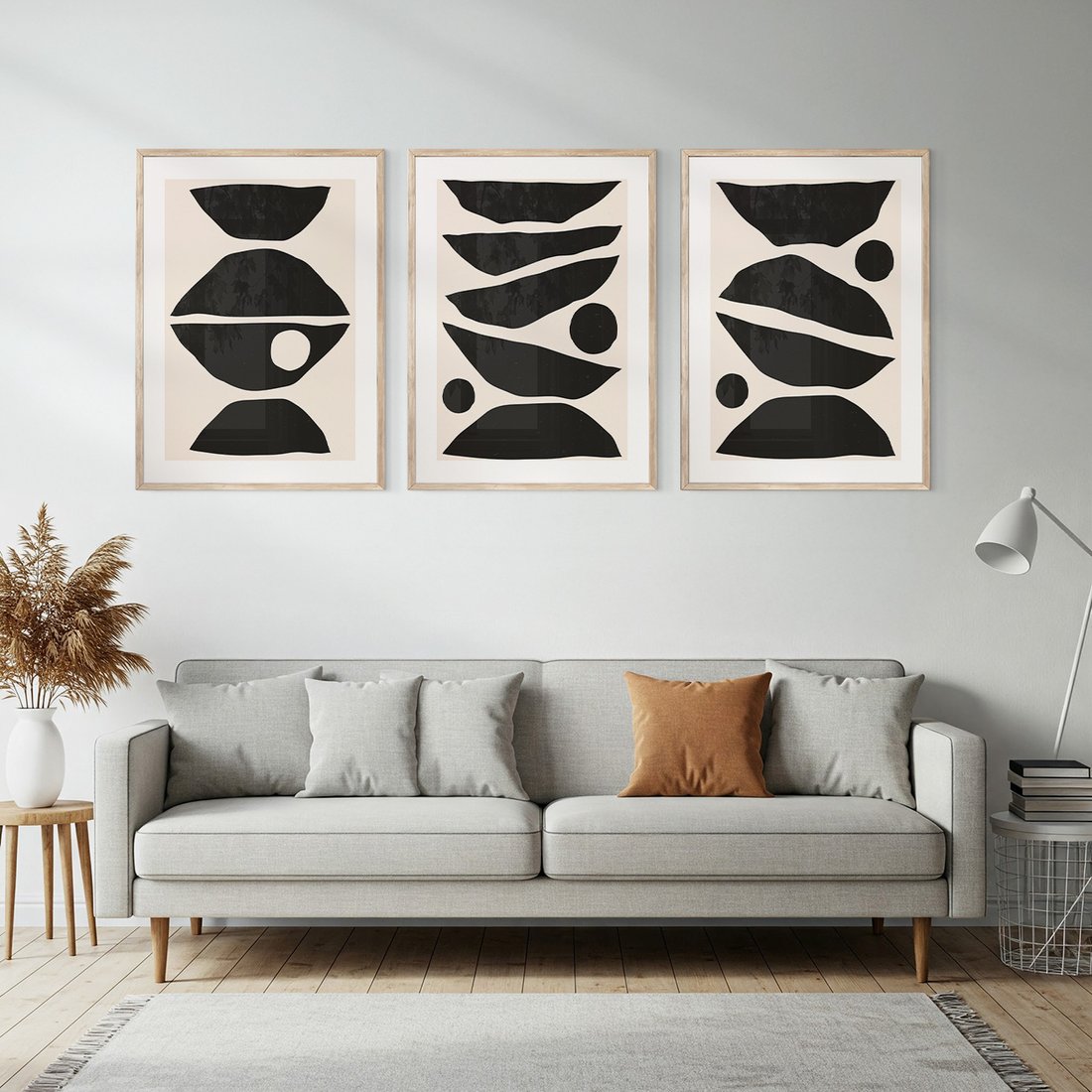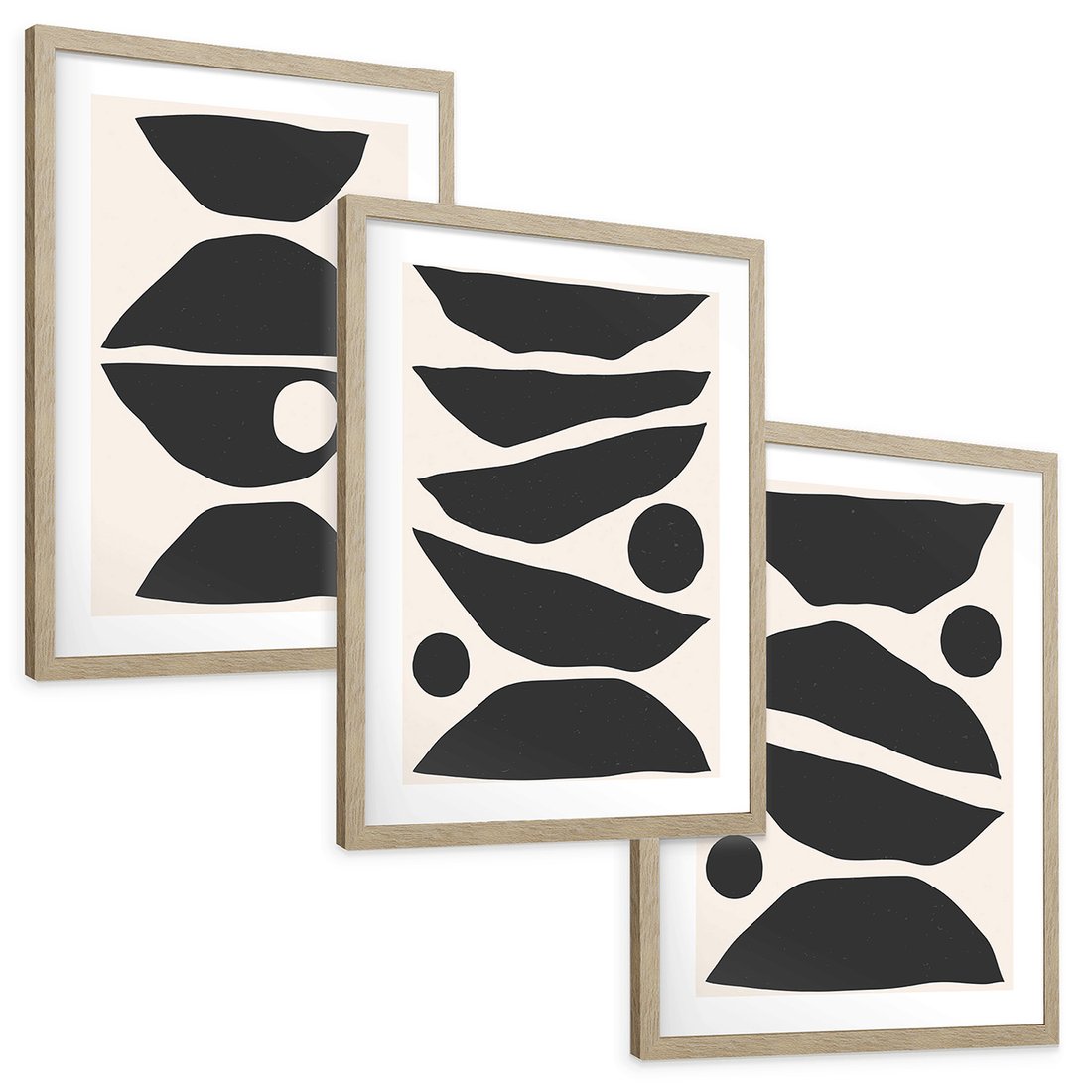 Zestaw obrazy w ramie, plakaty - abstrakcja, minimalizm, kształty - rama drewno