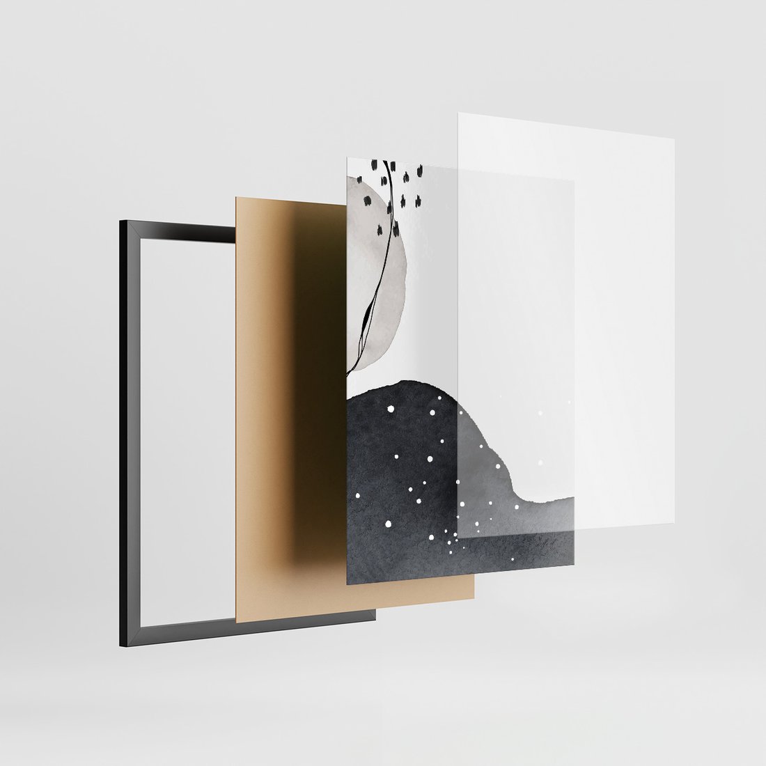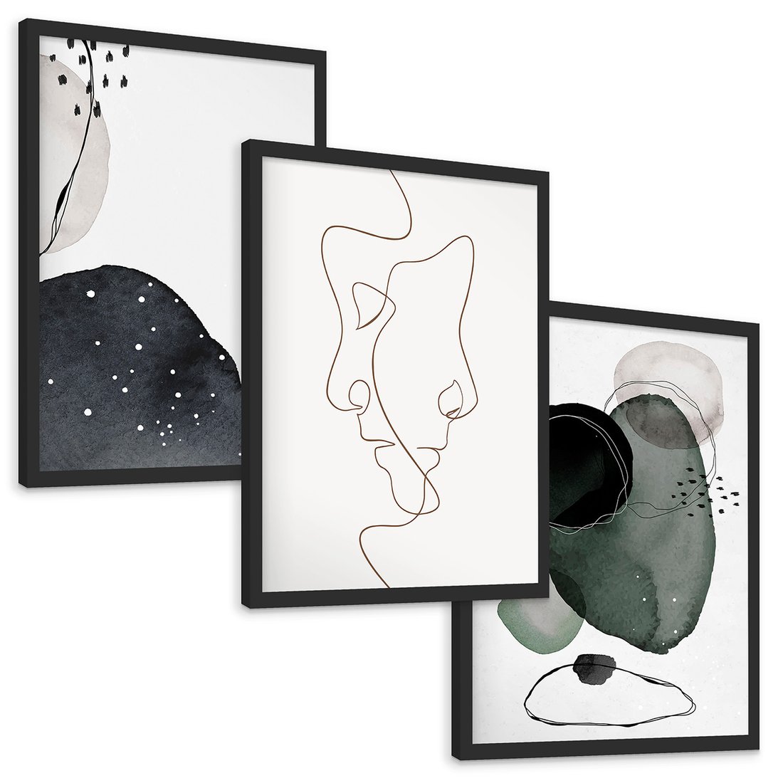 Zestaw obrazy w ramie, plakaty - abstrakcja,minimalizm,linie - rama czarna