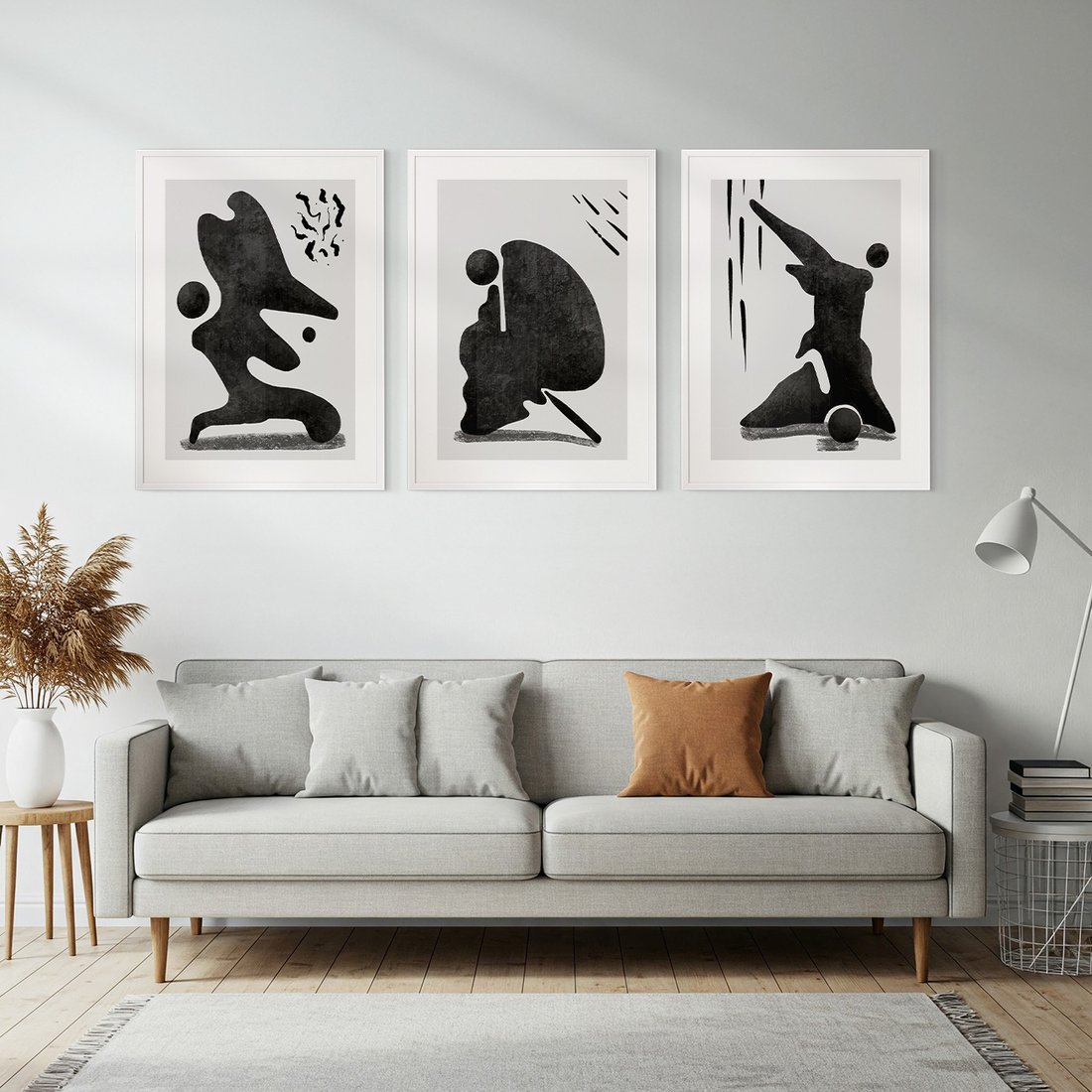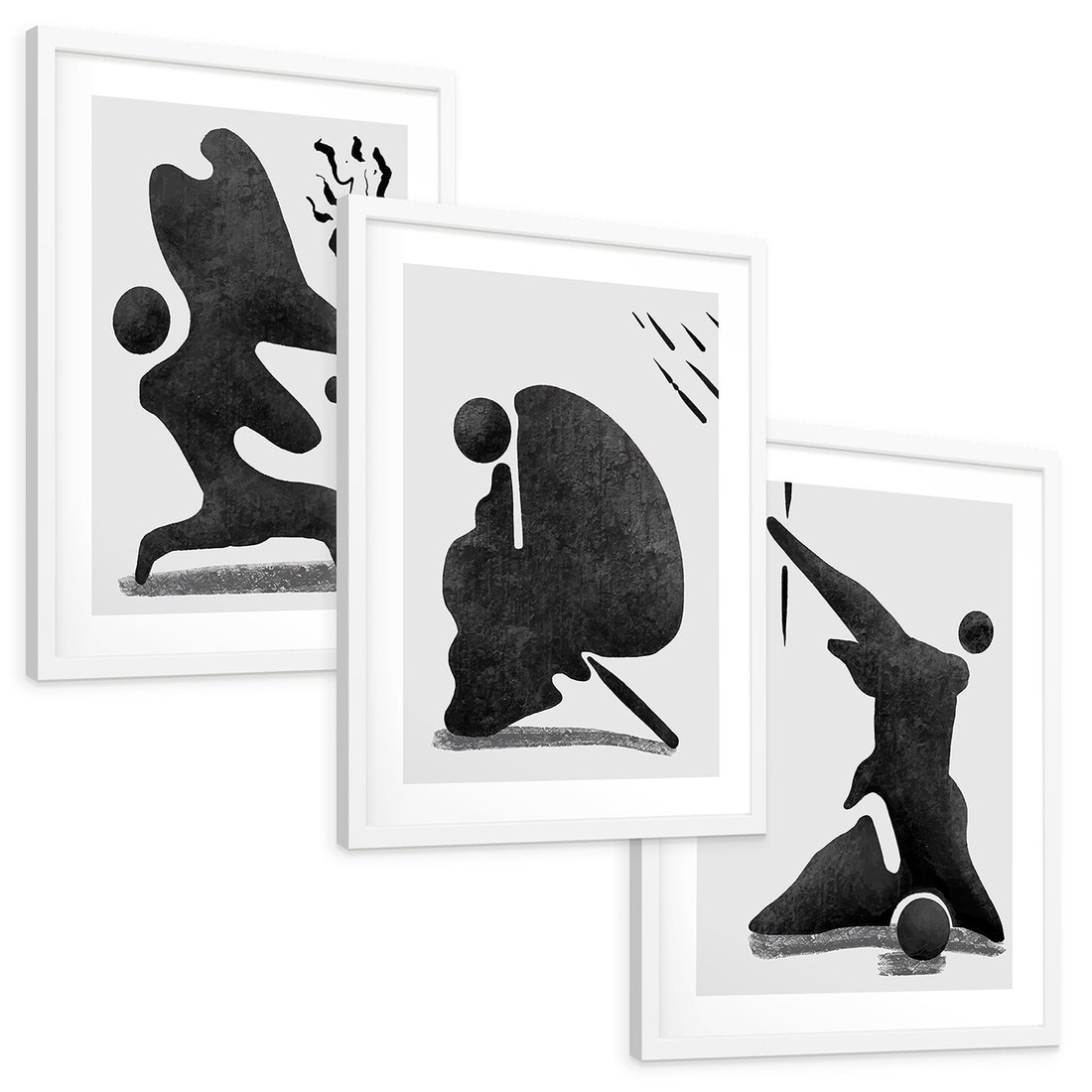 Zestaw obrazy w ramie, plakaty - abstrakcja,minimalizm,nowoczesne - rama biała