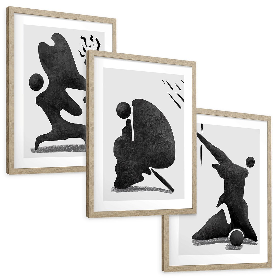 Zestaw obrazy w ramie, plakaty - abstrakcja,minimalizm,nowoczesne - rama drewno