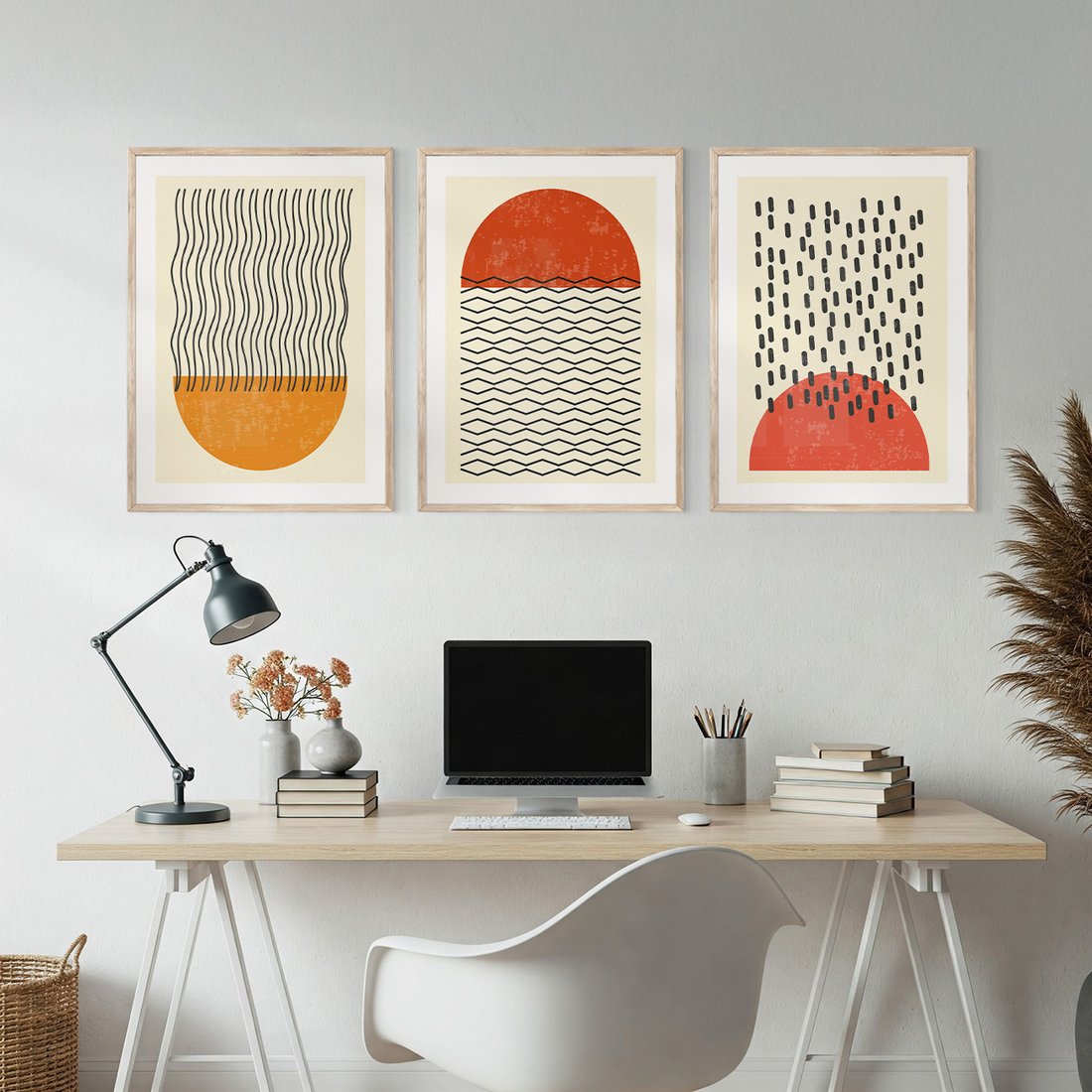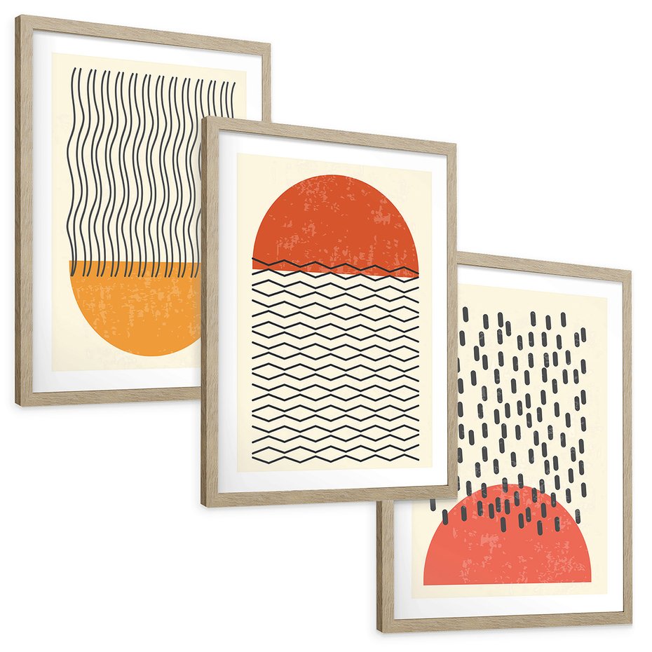 Zestaw obrazy w ramie, plakaty - abstrakcja, minimalizm, wzory - rama drewno