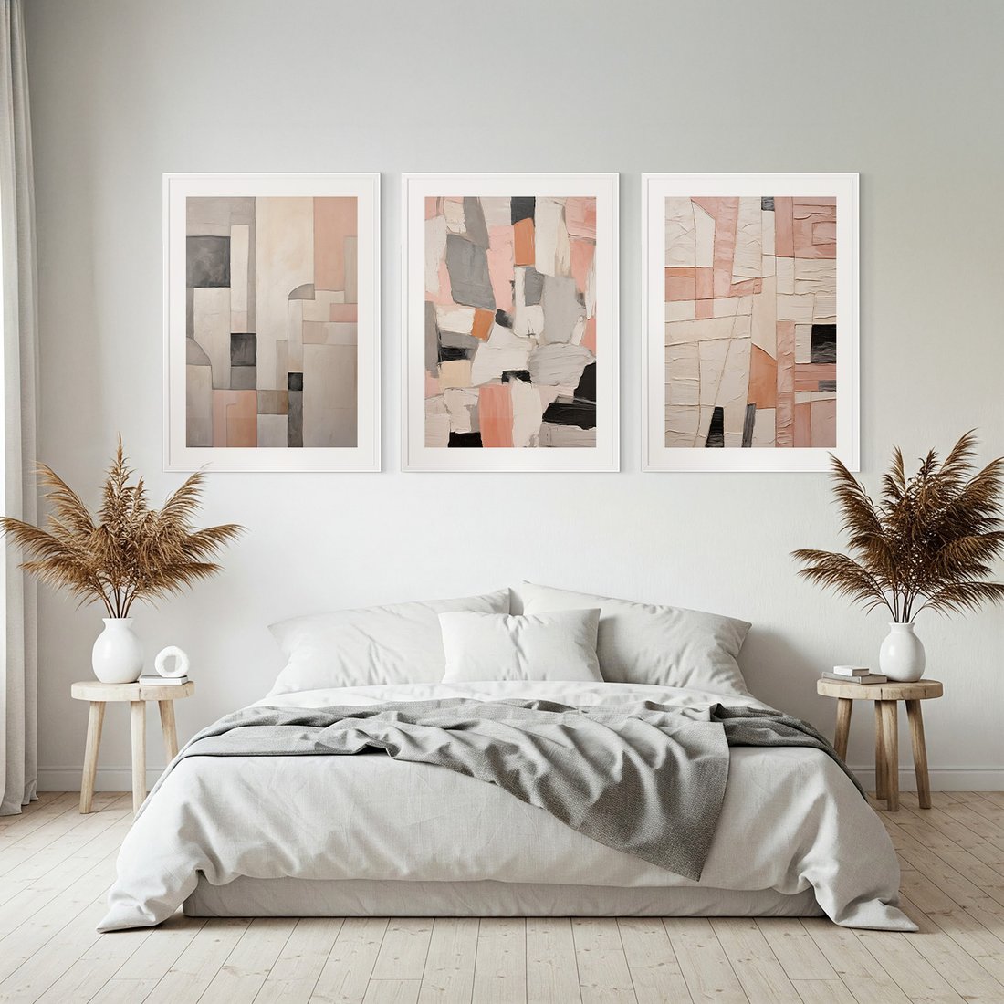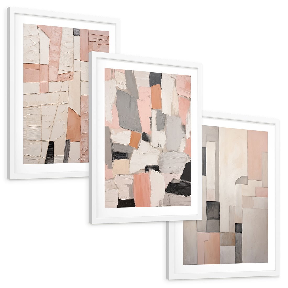 Zestaw obrazy w ramie, plakaty - abstrakcja, pastelowe, geometryczne - rama biała